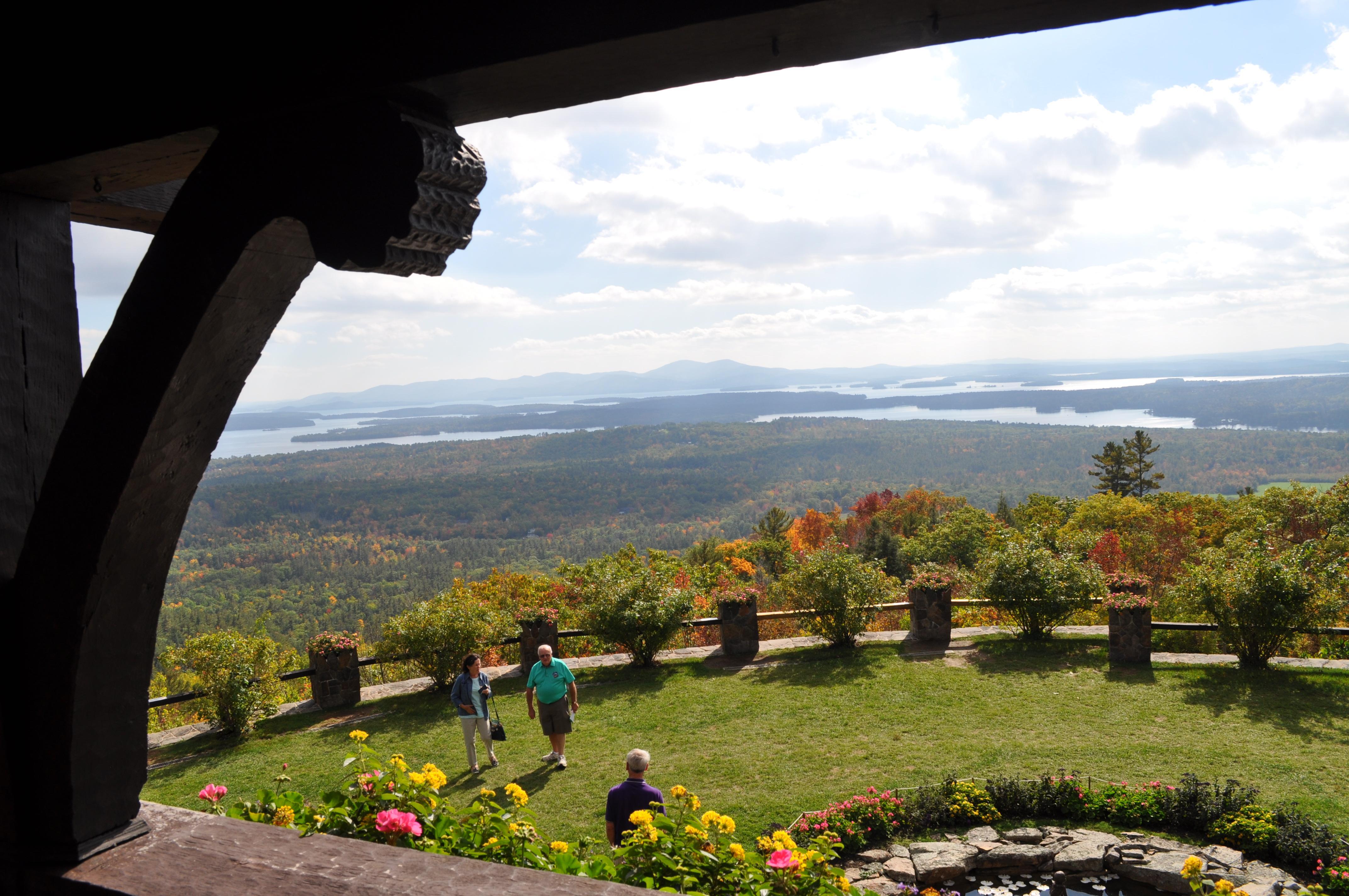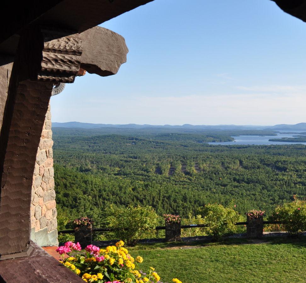 Allow the mountain air and lake views to delight your guests as they enjoy cocktail hour on this stunning terrace overlooking Lake Winnipesaukee.