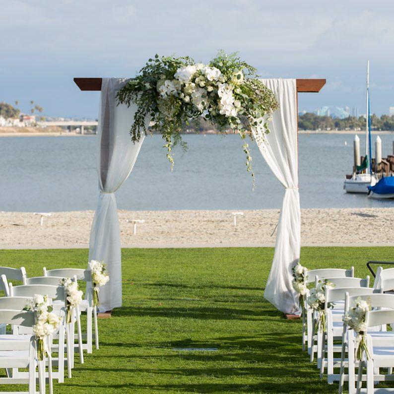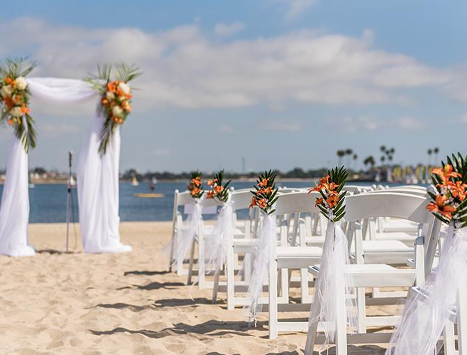 Exchange vows overlooking Mission Bay with your toes in the sand or in a private gazebo surrounded by the lush greenery and tropical gardens.