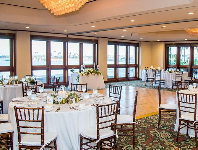 A beautiful choice for your wedding reception, the Catamaran’s spacious bayfront ballroom leaves your guests in awe over the dramatic chandeliers and open-air balcony where panoramic views of Mission Bay are always on display.