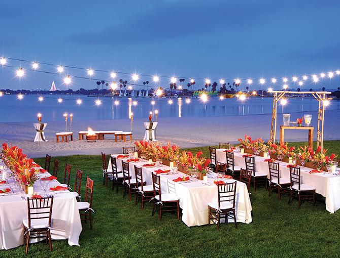 Wedding Ceremony & Reception in San Diego. Celebrate your love in style with your dream wedding ceremony and reception at the Catamaran Resort Hotel. Enjoy breathtaking views of Mission Bay from the Aviary Ballroom, stay outside on our bayfront outdoor lawns, or dance the night away in our unique Polynesian Kon Tiki Ballroom. The Catamaran offers wedding ceremony and reception venues to fit every taste.