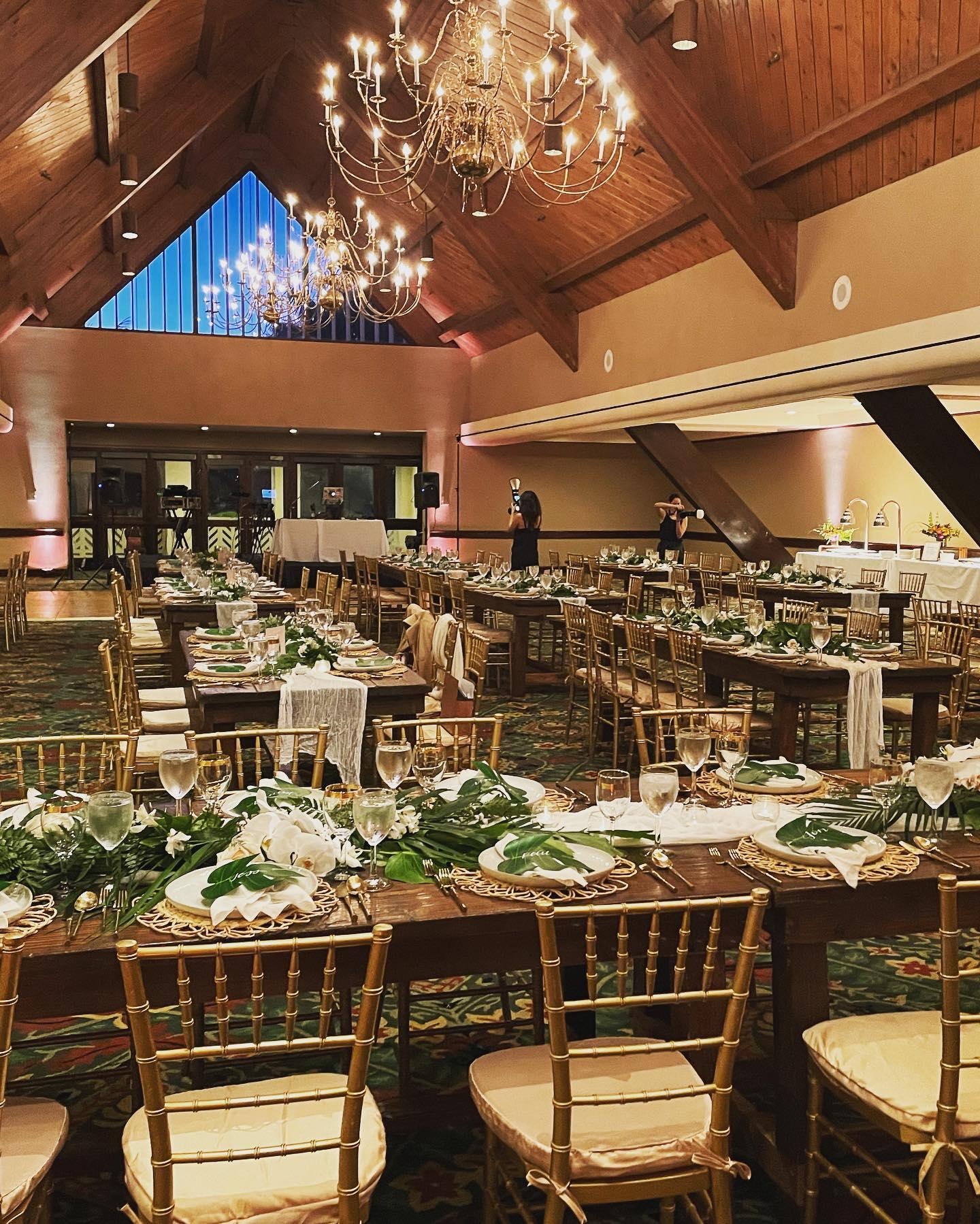 Our signature Polynesian-style ballroom, accented by its South Pacific-inspired cathedral ceiling and elegant chandeliers, makes for an impressive wedding reception venue for a memorable evening of delicious food and heartfelt toasts.