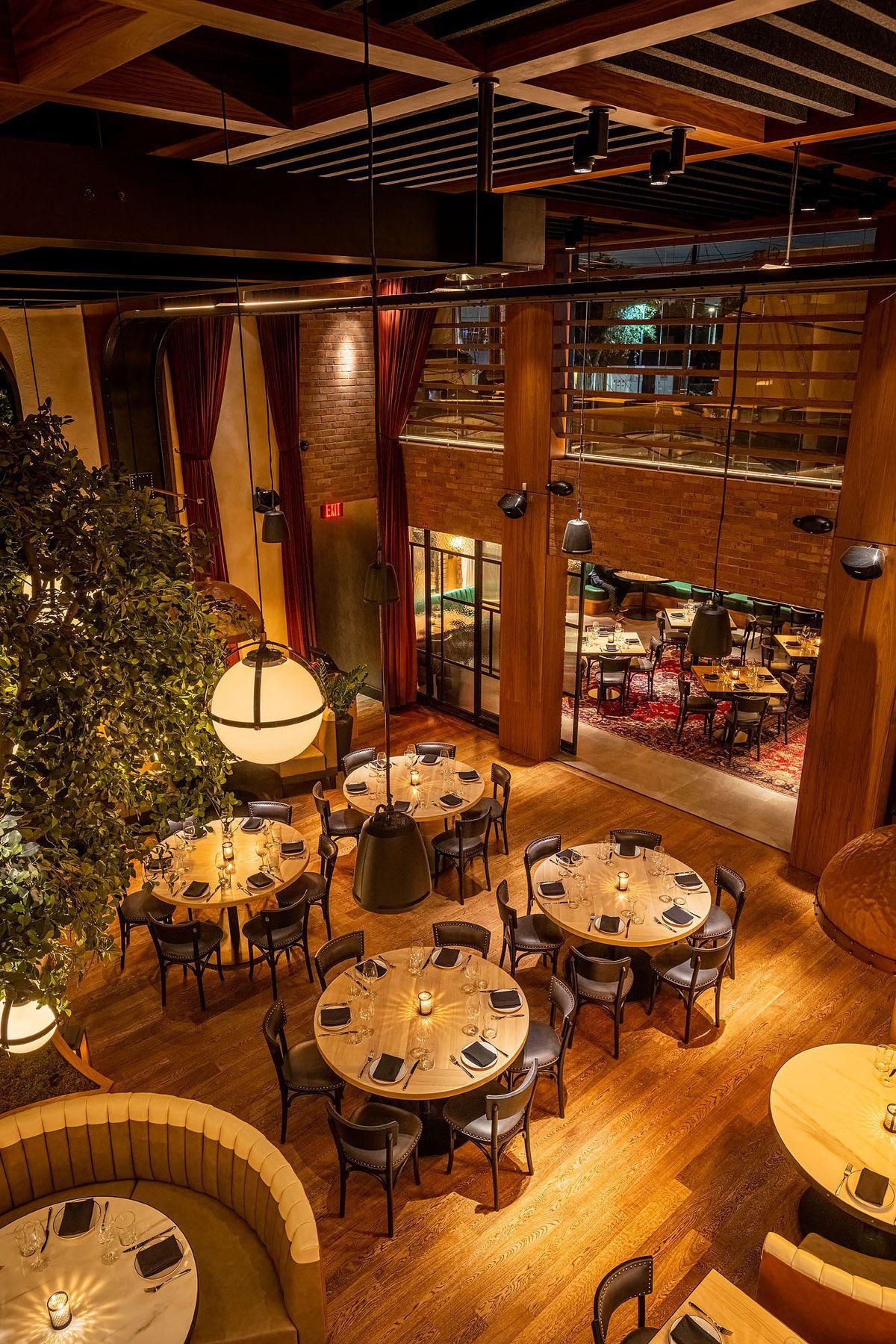 The split-level restaurant on Melrose Place, designed by the Rockwell Group, takes cues from the original Catch Steak in New York City’s Meatpacking District and features warm wood details, leather banquettes, and blackened metal touches. The abundance of greenery throughout the 375-seat space provides a verdant setting for both an indoor and outdoor experience.