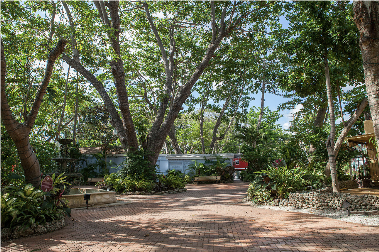 The Tropical Garden area boasts fountains, sculptures, birds, and an abundance of lush foliage.