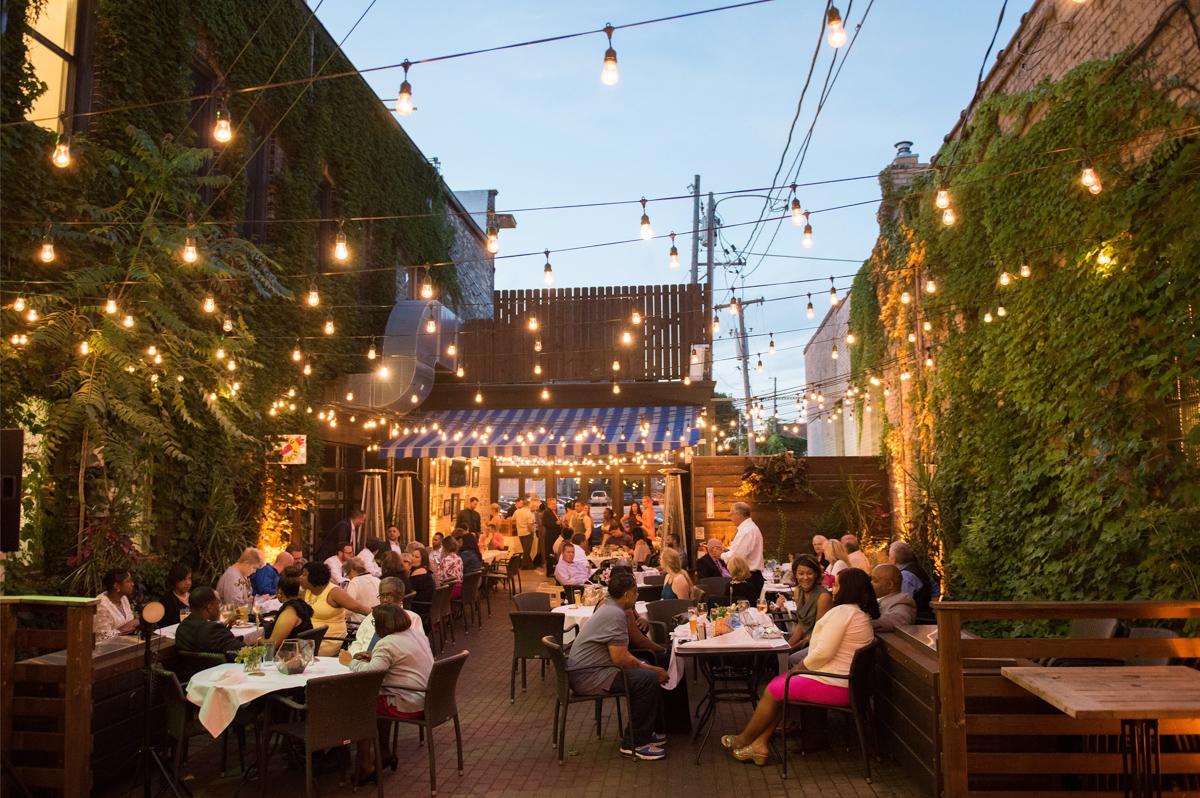 Experience the magic of our outdoor Courtyard while dining under café string lights and amongst the tall Cream City brick walls, reminiscent of a secret garden. Year-round comfort is provided in this unique space with a heated enclosed tent in the colder months!