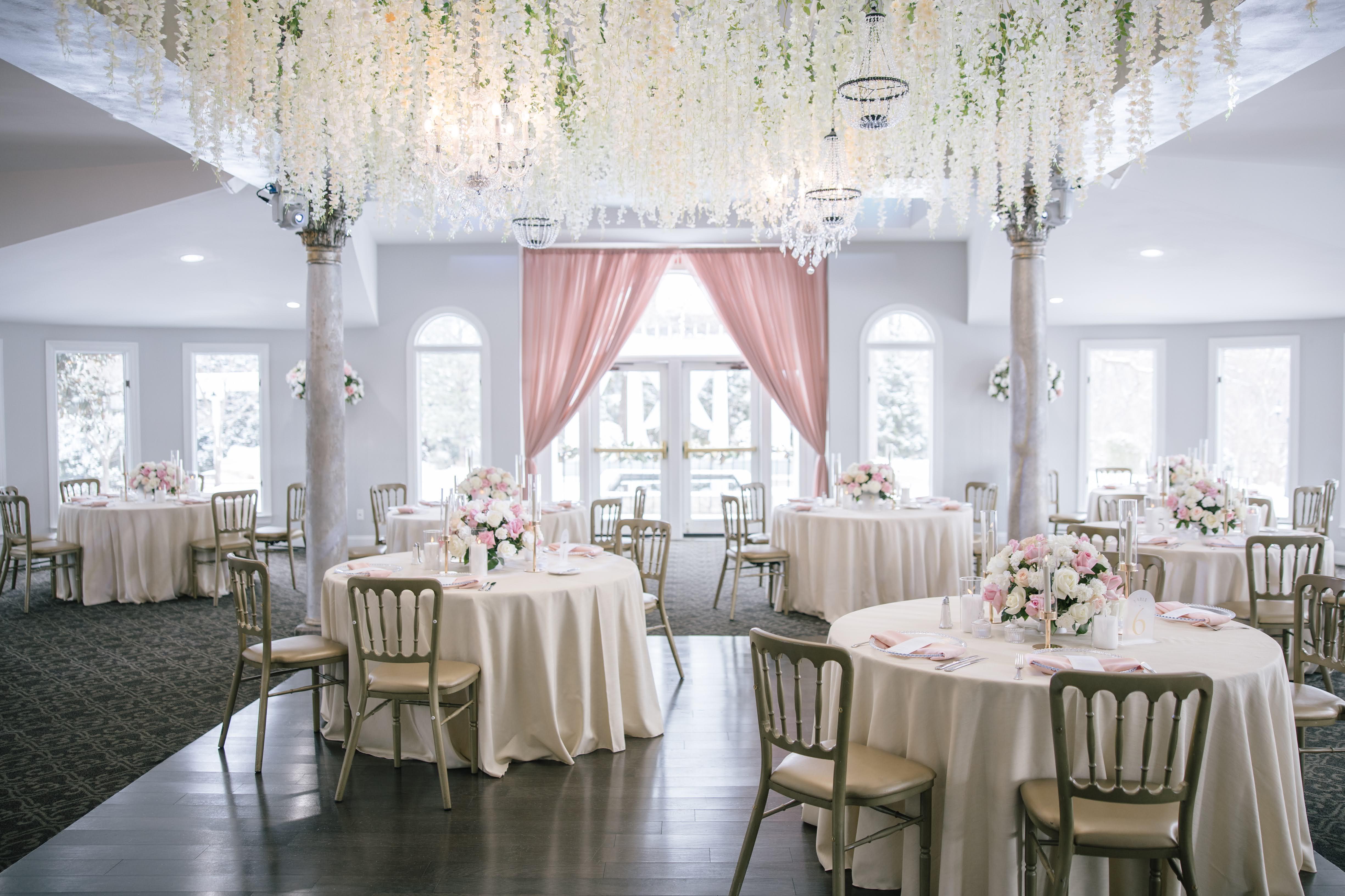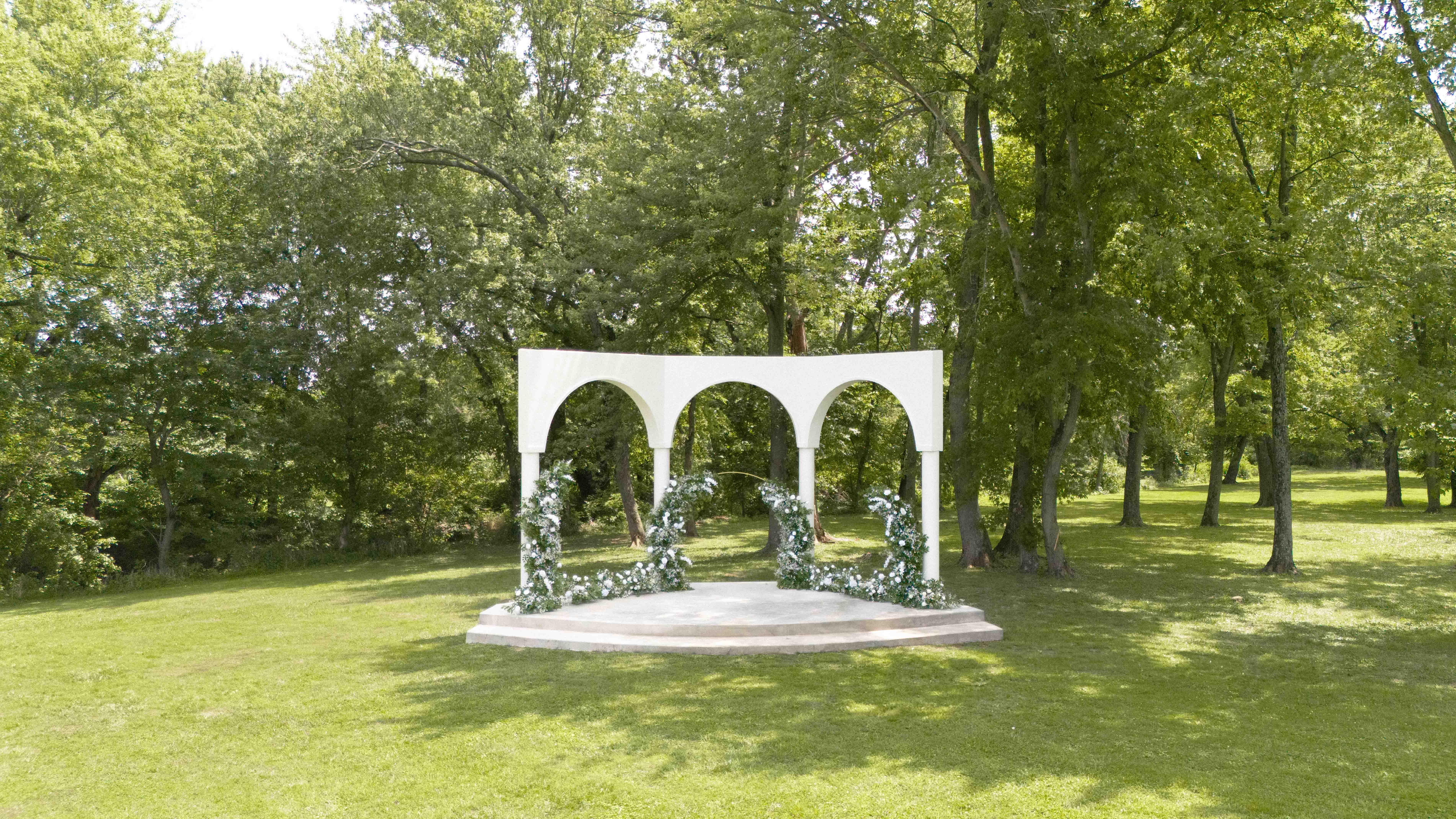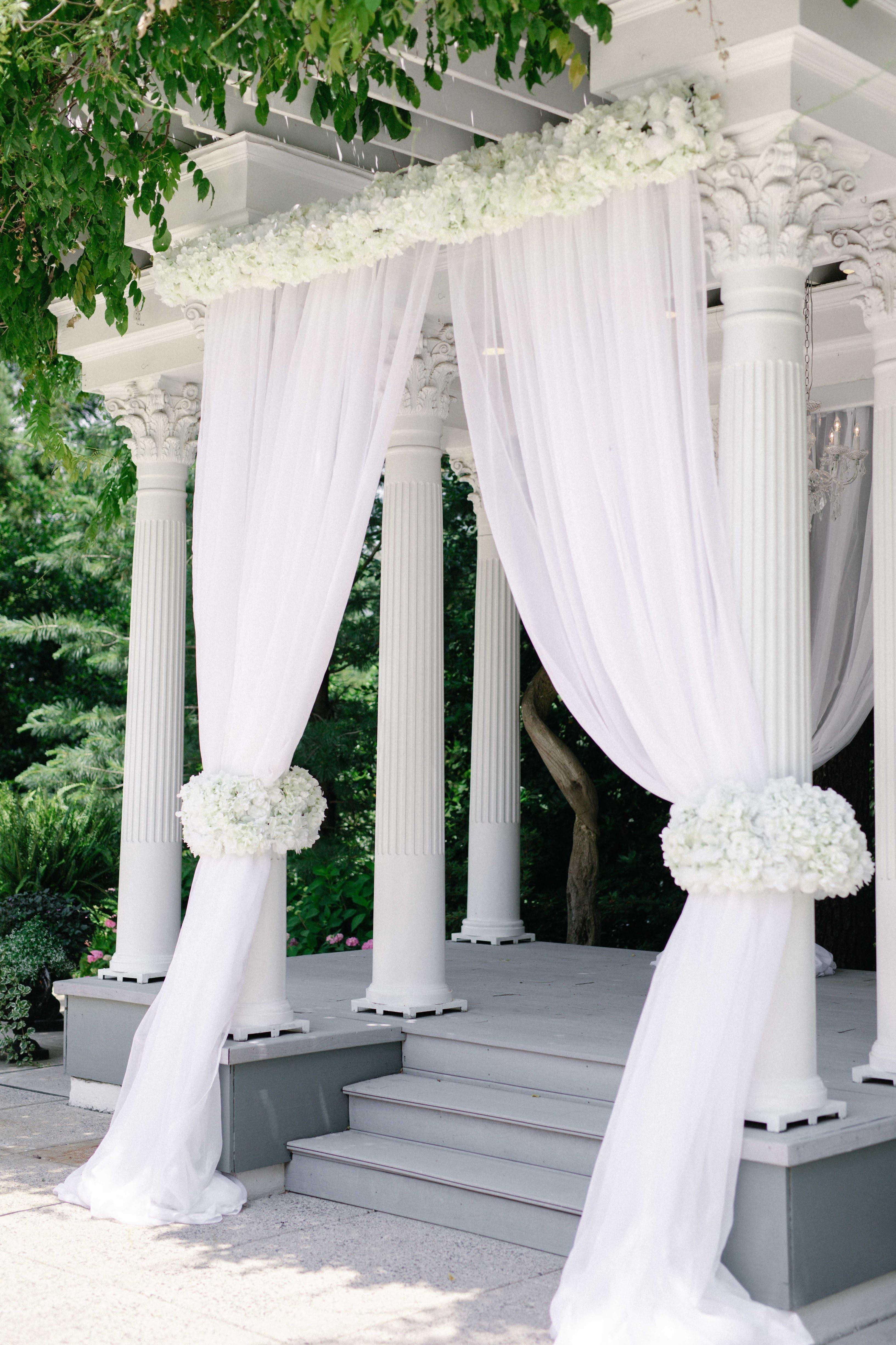 - Wisteria-covered Pergola - Reflecting pond - Beautiful garden area - Tables and linens - White ceremony chairs