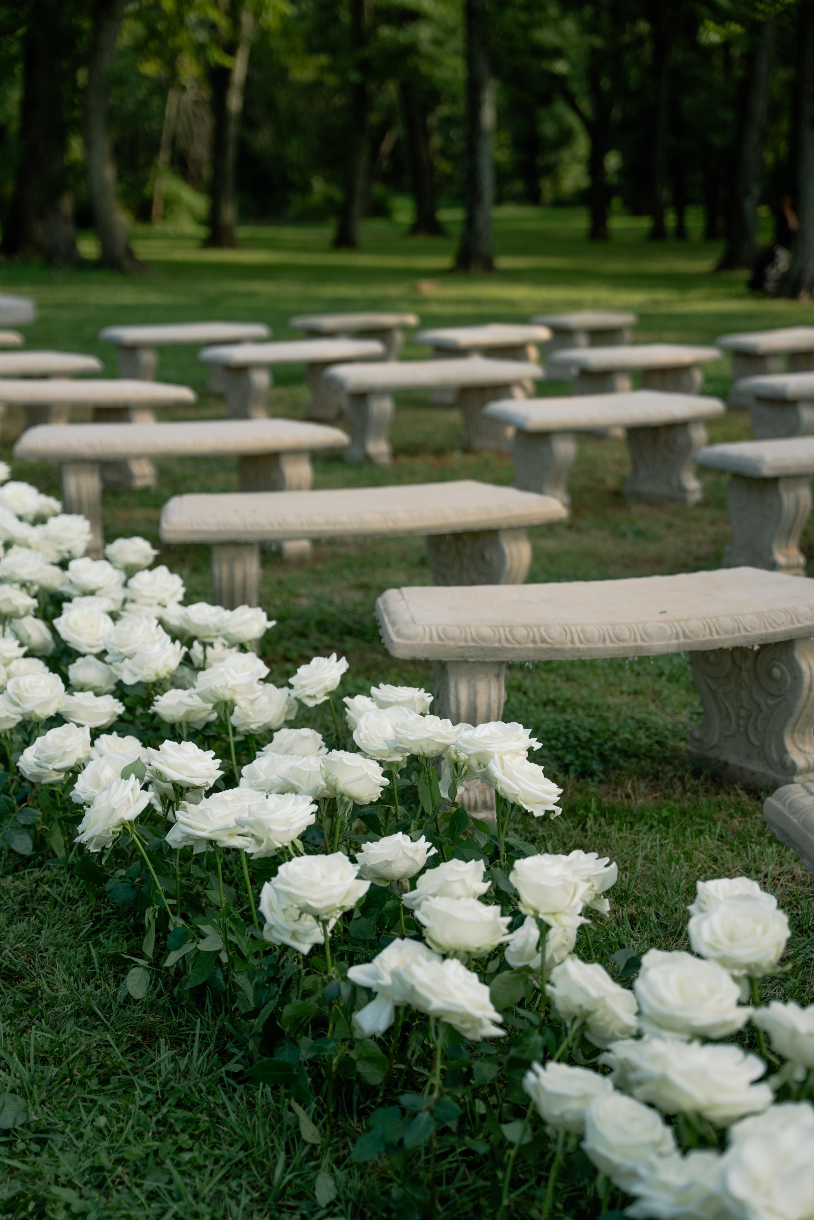 • Built-in garden benches • Elegant ceremony archs • Permanent Stage • Power access • Access to riverside photo locations • Access to formal European Gardens for photos