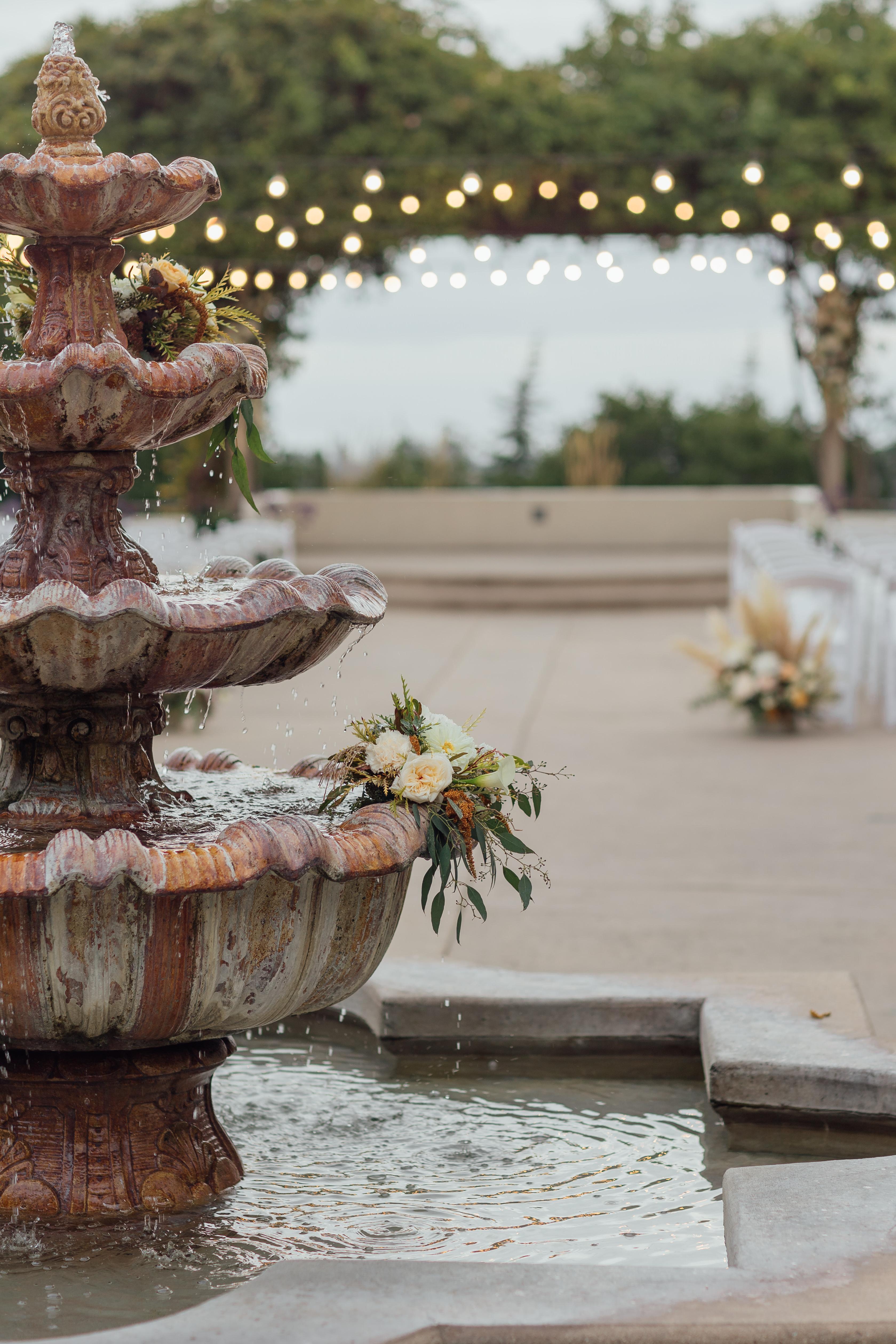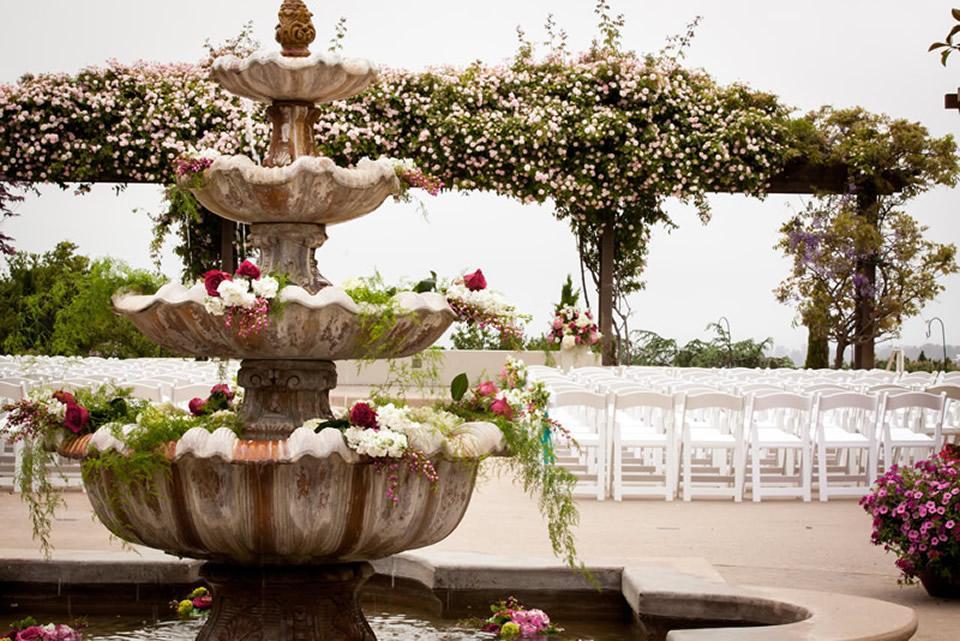 Let the trickling fountain soothe you before taking in the picturesque panorama of sprawling greenery and the distant ocean. You can exchange vows beside the wisteria-laden arbor; their photogenic focal point. This space can seat up to 200 guests.