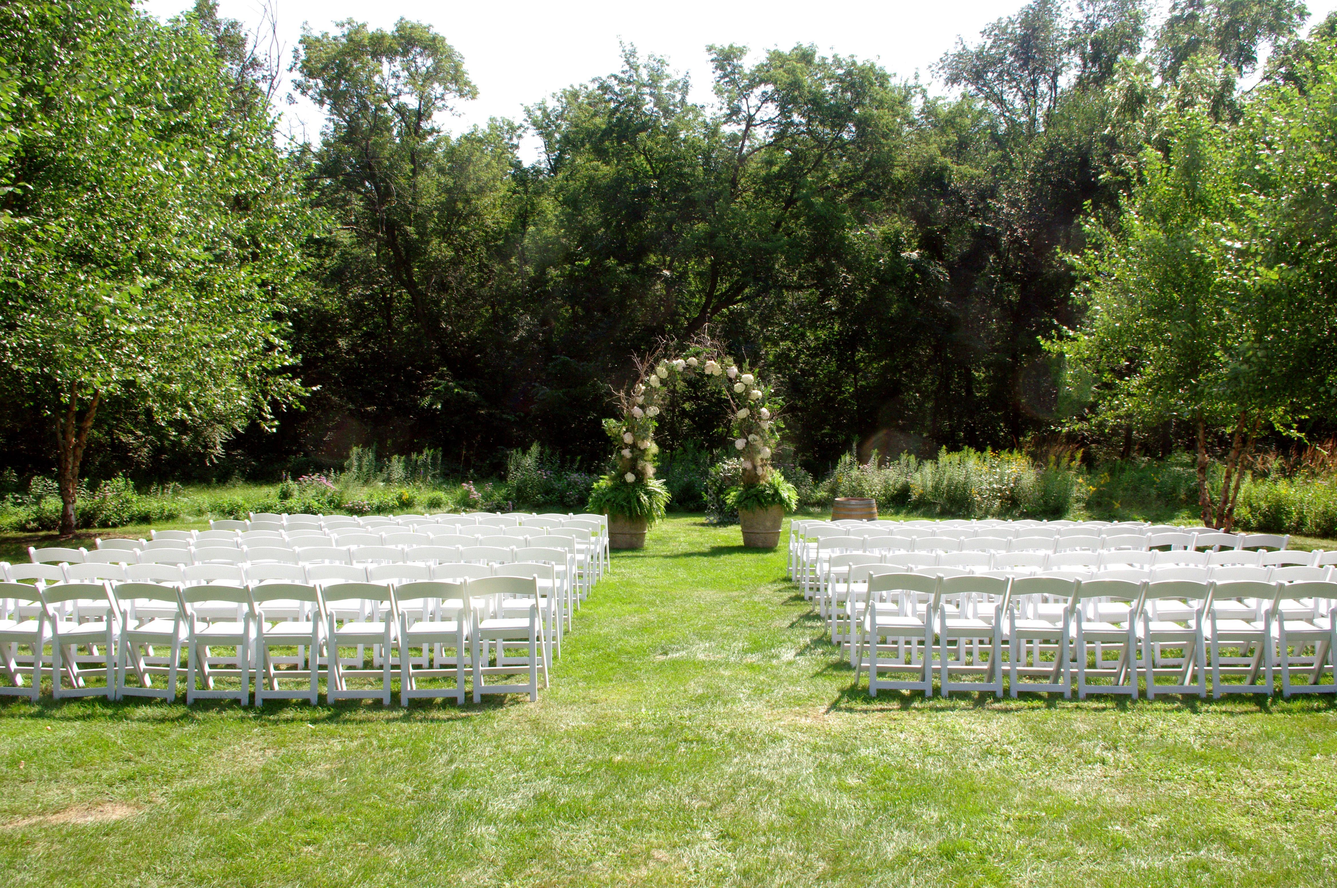 Ceremony location - choice of Forest or Court White garden chairs, setup & tear down Golf cart shuttle - by Chankaska Employee CREEKSIDE RECEPTION Setup of tables, chairs and linens 60” round guest tables that seat 8 per table Folded linen napkins in white or black White or black linens for all tables All other table needs plus floor length linens Romantic lighting Bridal Suite with private patio Grooms Suite Venue Coordinator Parking attendants Reception security Yard games Bar staff