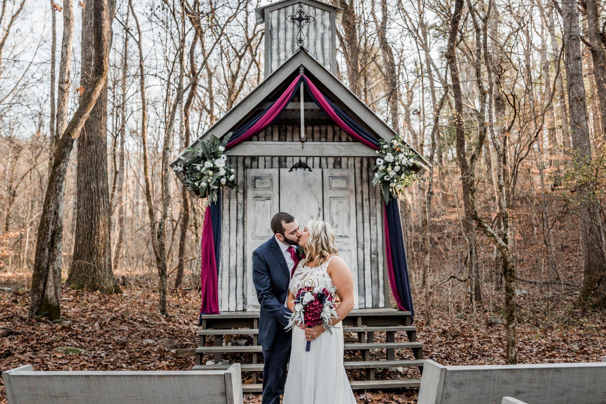 Chapel in the Hollow is a quaint, mini Smoky Mountain wedding chapel and is a family owned and operated business — by Ian and Chastidyi. You will speak with one of us each time you email or call, and we will do our best to make you feel at home in our little slice of heaven. This sweet little chapel is on a piece of private property near Gatlinburg and Pigeon Forge which means you get to enjoy the best part of the Smokies without having to deal with tourists, strangers, permits, or government regulations. This is an outdoor only wedding venue for your ceremony, and we have a bridal suite for the couple to use to change.