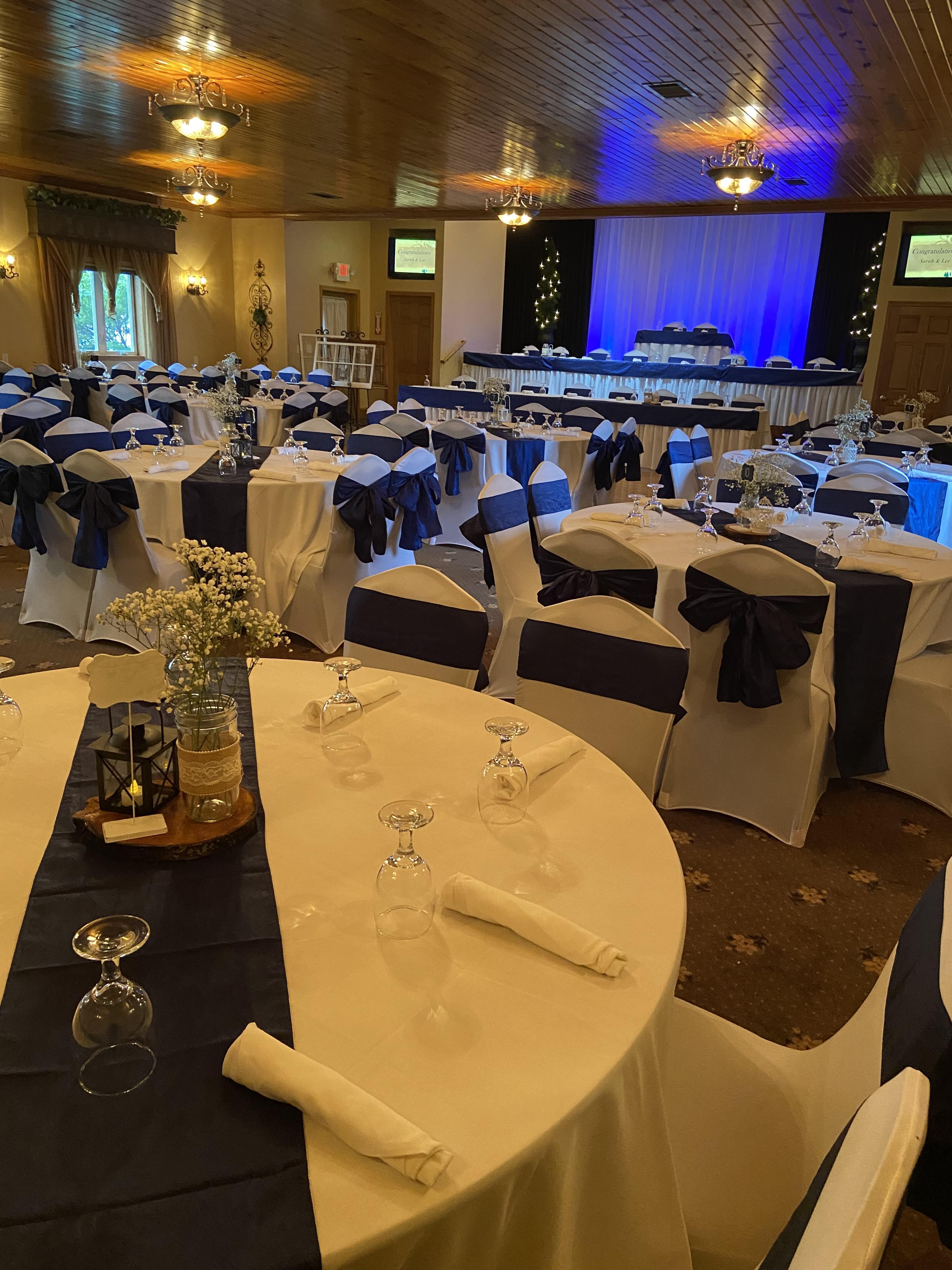 - Venue Setup & Cleanup - Table Linens (White or Black) - Chair Covers (White or Black) - Cloth Napkins (White or Black) - Chair Sashes (Multiple Color Choices) - Skirted Tables - Permanent Bridal Party Stage - Twin 39" Monitors - Media Projector - Permanent Dance Floor - Cake Display Area - Intimate Lighting Enhancements - Cake Display Area - Fire Pit - Venue Coordinators - Wedding and Reception Planning - In-House Catering & Bar Service - Climate Controlled Buildings - Paved, Lighted Parking