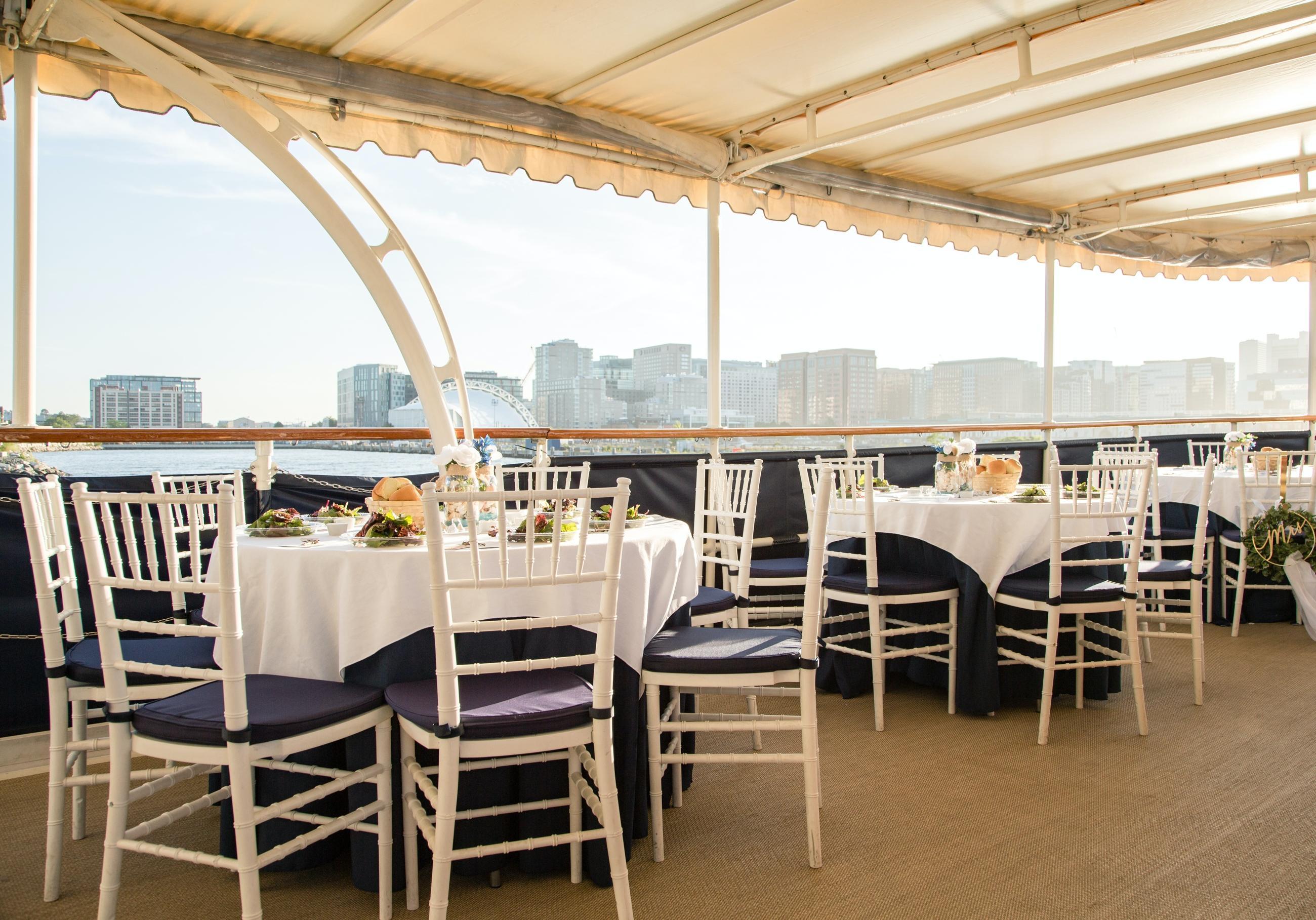 Charles River Boat Company Boston Harbor offers three classic vessels to host the ceremony, reception, rehearsal dinner, or engagement party of your dreams. Our boats offer the perfect setting for experiencing breathtaking views of Boston Harbor. Covered canopy decks offer a magnificent setting for a wedding ceremony, reception, and a dance floor! All chartered events offer a full-service premium bar and a variety of catering options. The possibilities for your wedding event are endless. Have your wedding with the Charles Riverboat Company - Boston Harbor and create memories that will last a lifetime.
