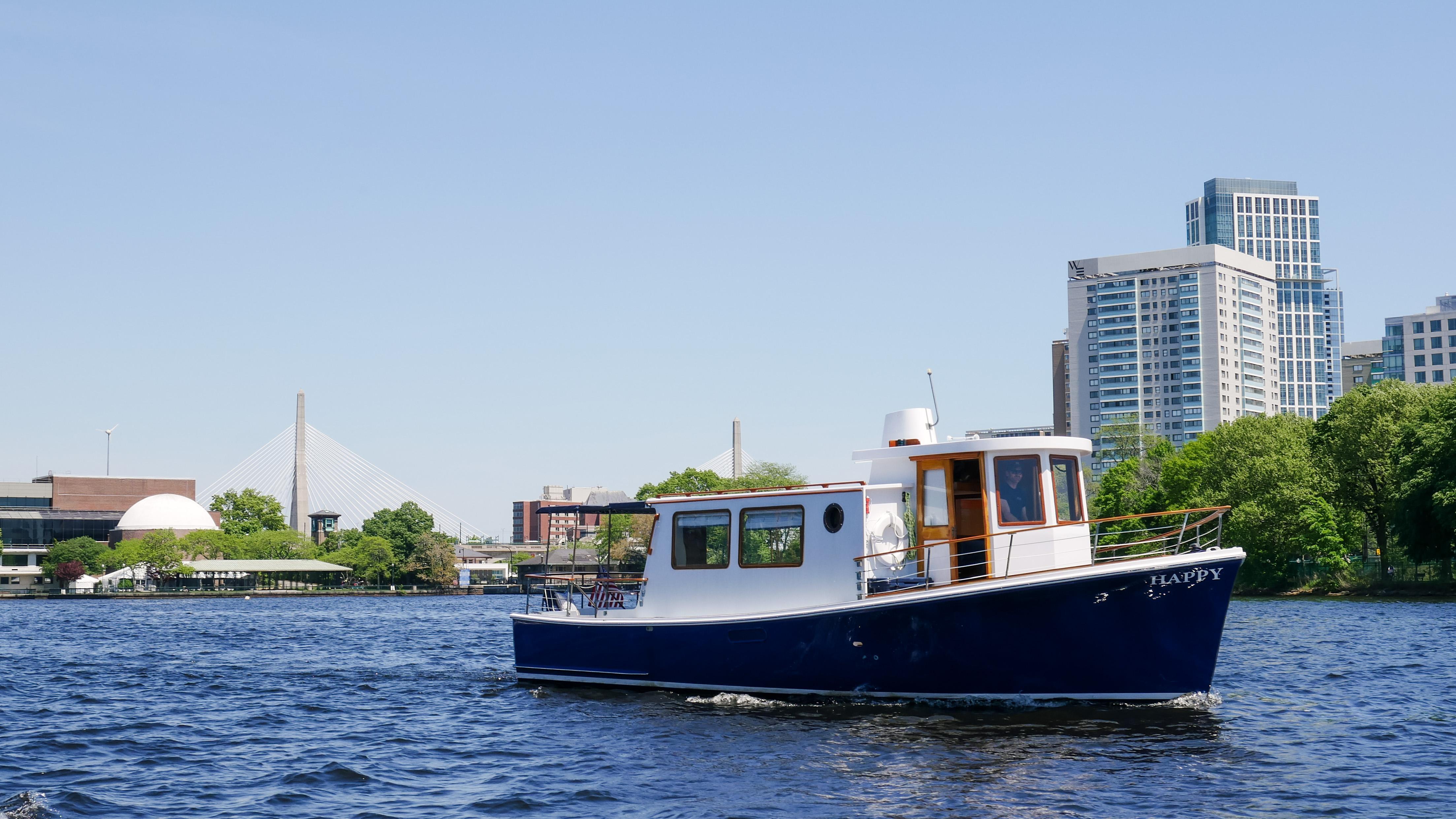 "Happy" is a custom-built 36’ vessel that provides the perfect vantage point for taking in the incredible sights of the Boston Harbor and Charles River. The boat offers an indoor lounge, a covered outdoor deck, and a beautiful open-air bow. Happy is available for groups between 2-20 guests with a full bar and catering options. The boat is perfect for intimate outings, proposals, company gatherings, and other social events.