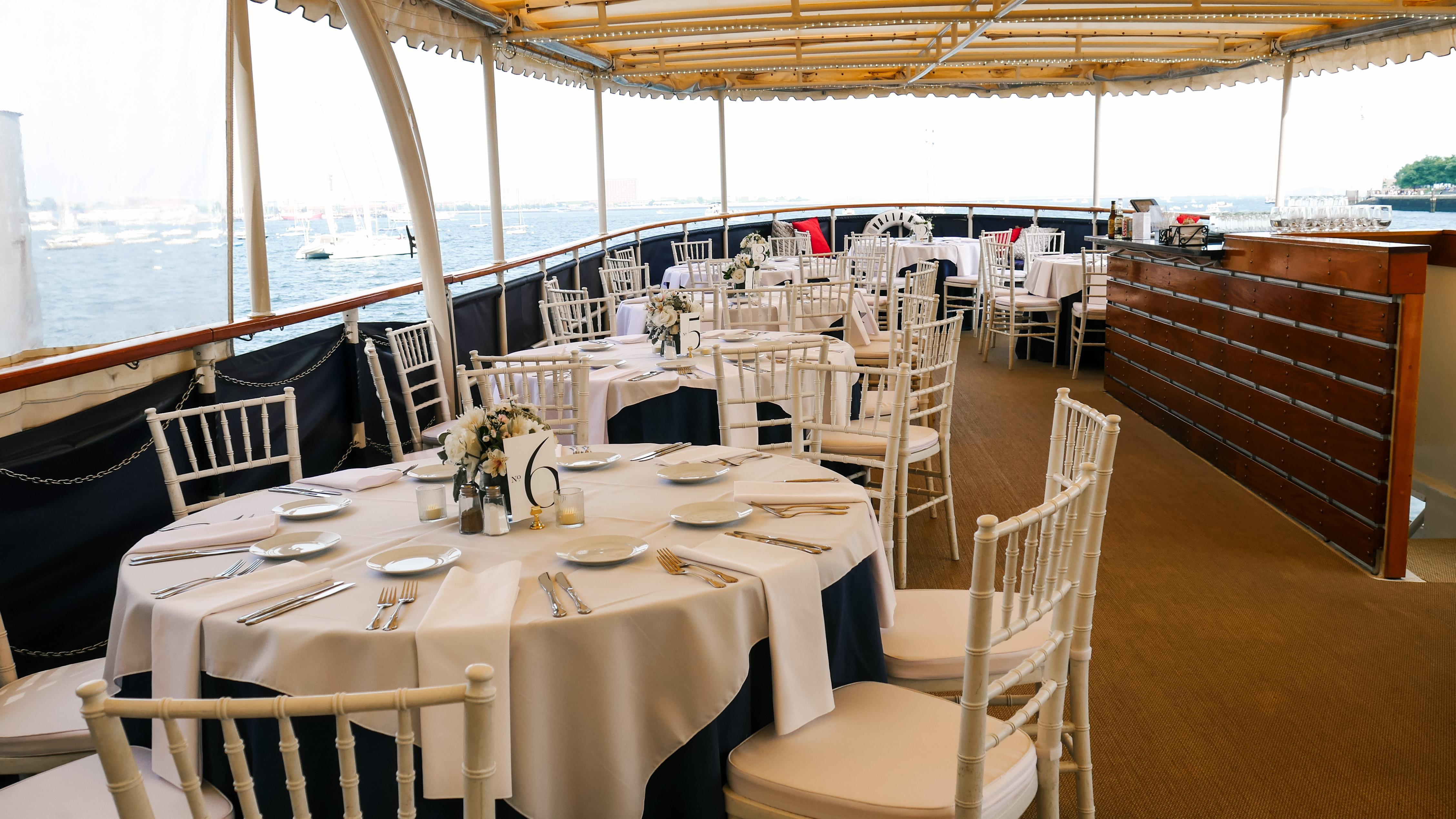 Yacht Valiant provides a upscale and sophisticated New England style space perfect for celebrating out on the water!