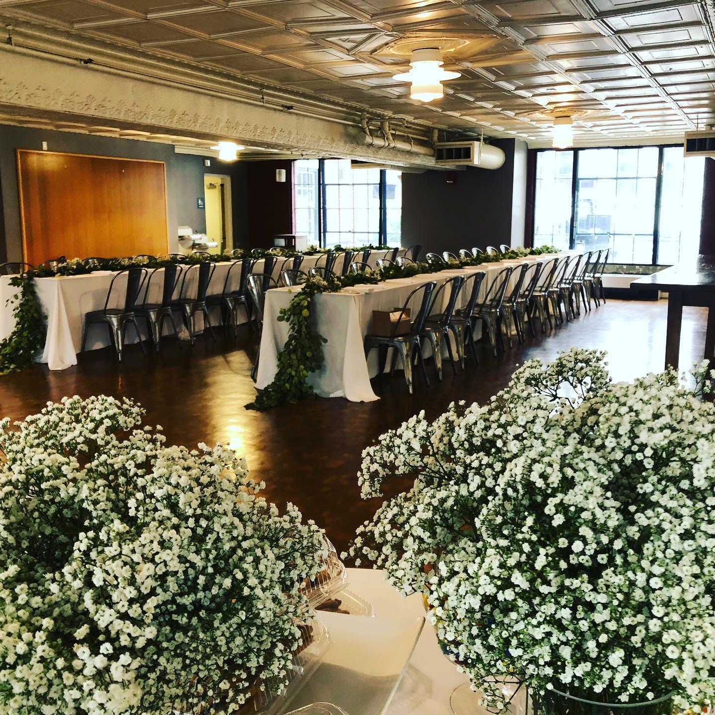 - Two day rental of the whole 3rd floor- Charter Hall (Friday 10 am-9 pm | Saturday 10 AM- 11 PM) - Campbell Ave. Mezzanine for cocktail hour - Large built in stage & dance floor - Set up & breakdown of all of our in-house tables & chairs - 5’ round tables, 6’ rectangular tables & 30’’ high-top bistro tables - Use of the bridal suite & catering kitchen - Use of built-in marble top bars - White chair covers - Bring in licensed caterer of your choice - On-site Events Manager