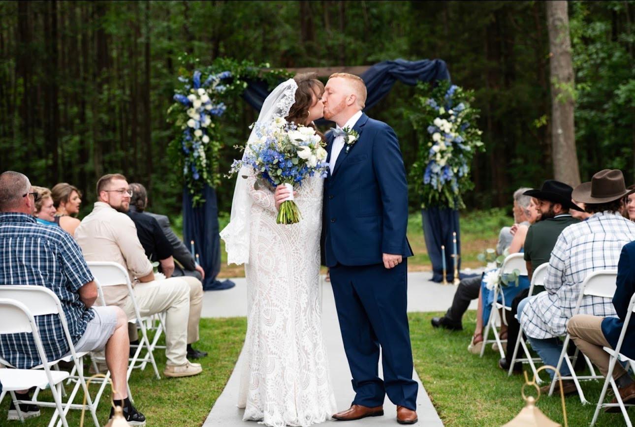 A beautiful forest backdrop ceremony site and romantic cocktail patio.