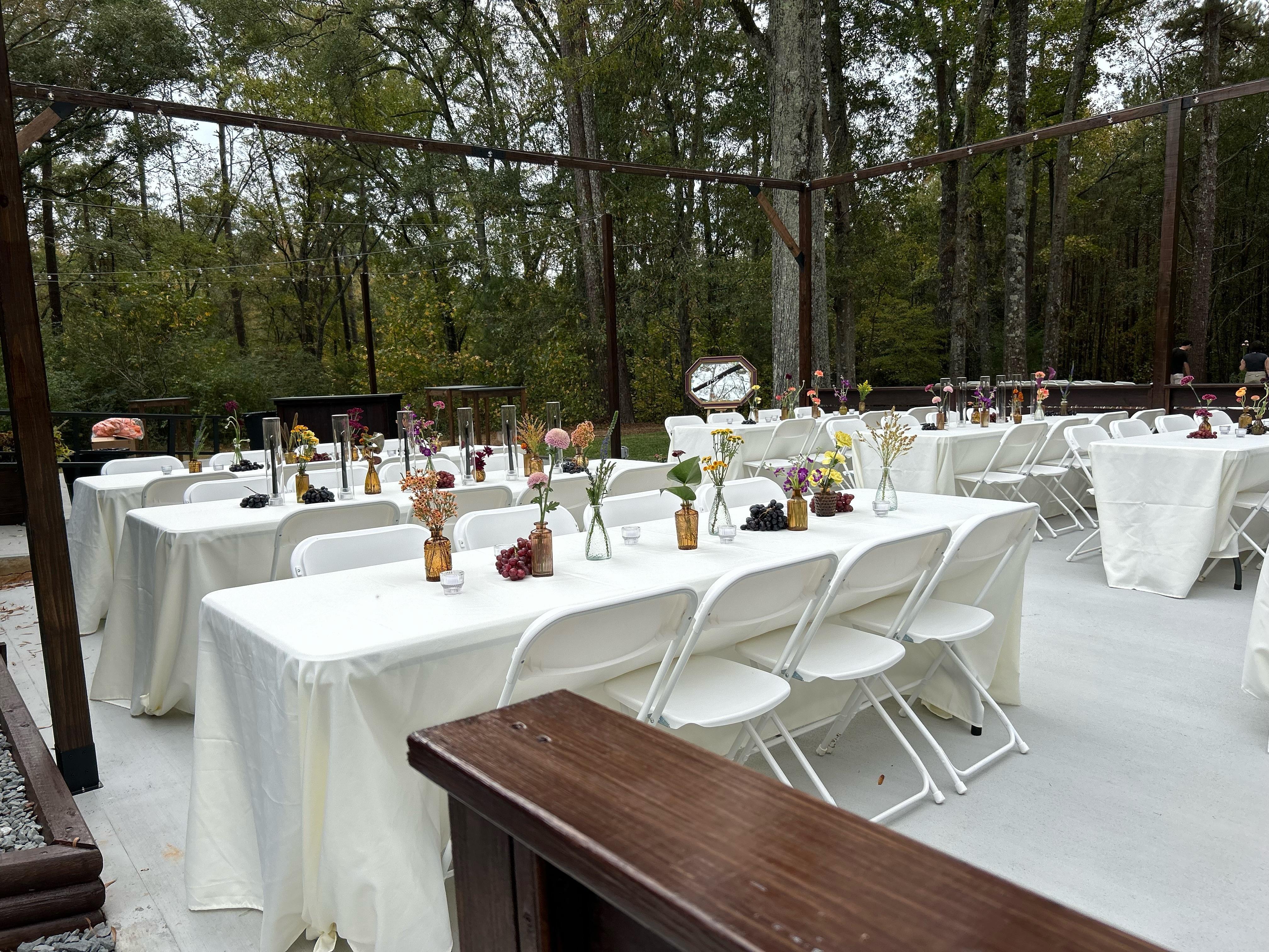 Weekend getaway Wedding! Check in at 12pm on a Friday, Check out at 10am on a Sunday Up to 16 overnight guests, Up to 100 wedding guests Extra time to decorate, host a rehearsal dinner etc. Unlimited access for the duration of your stay to the following: Historic mini mansion Events barn 4 acres of grounds Forest backdrop ceremony site Cocktail patio 2 nights accommodation for up to 16 of your VIP guests Tables, chairs, tablecloths, draping, Sound system, Commercial kitchen