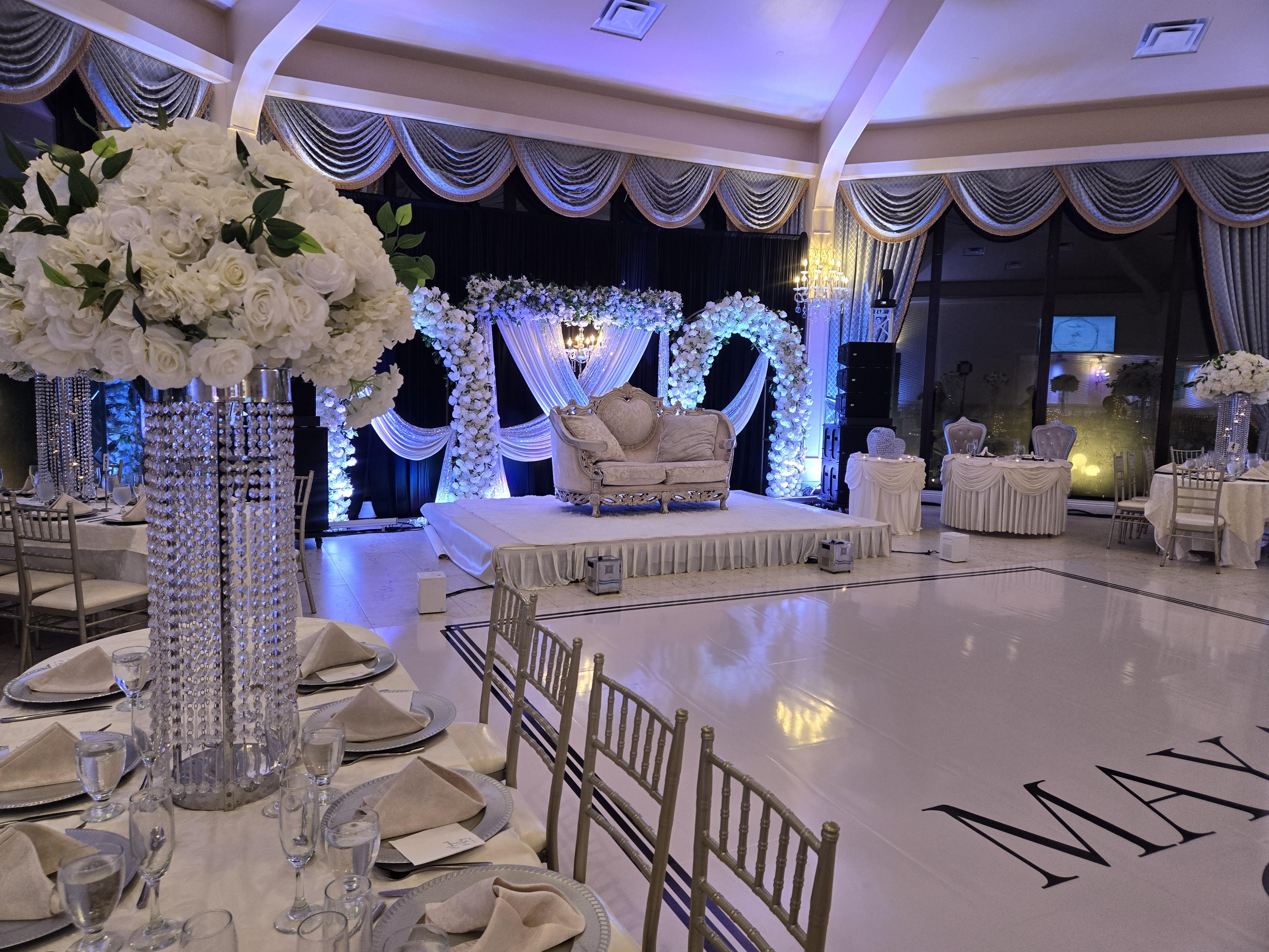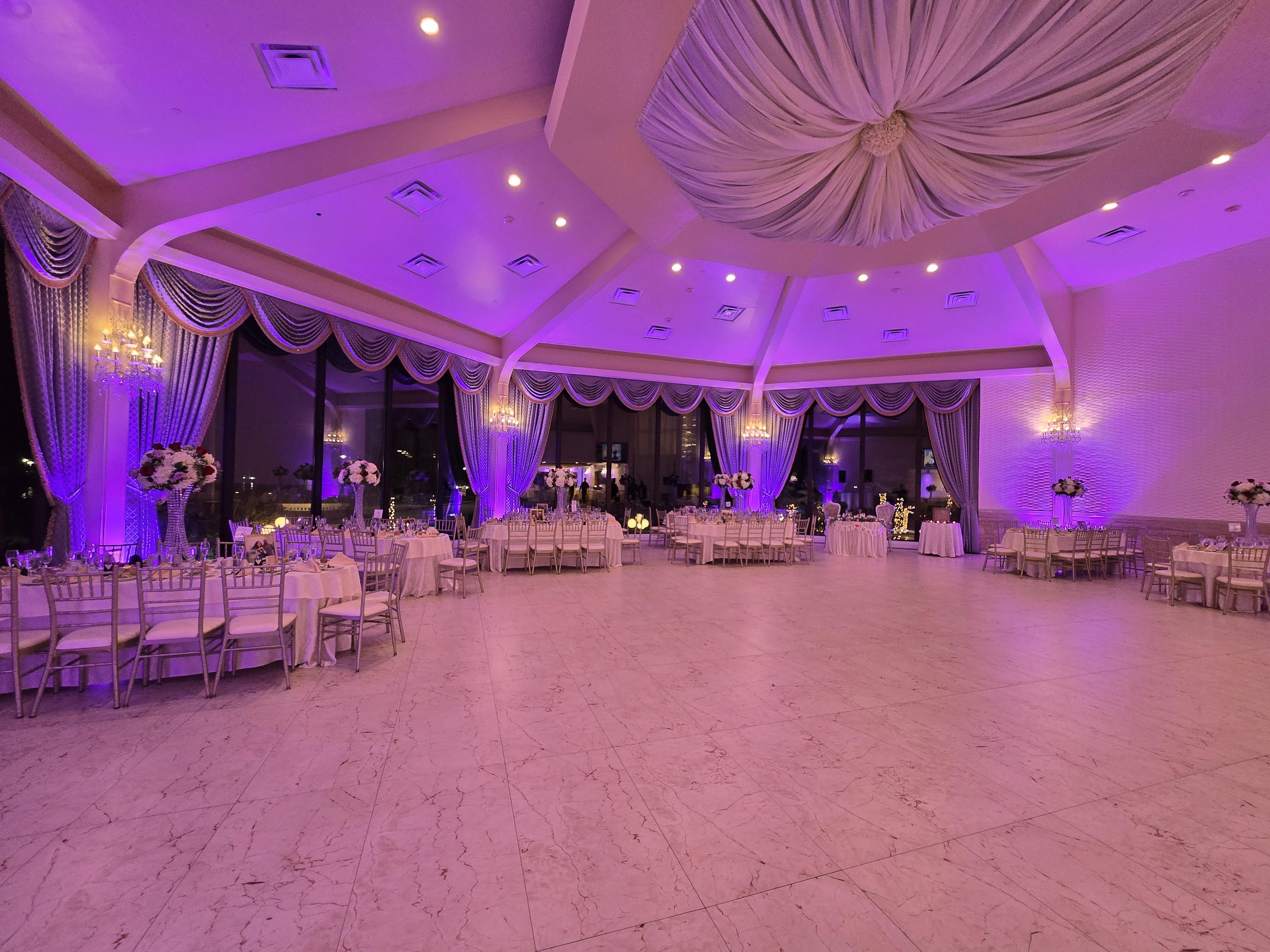 Chateau La Mer’s Atrium Ballroom offers an elegant and modern setting for unforgettable celebrations. With soaring 25-foot ceilings, luxurious marble flooring, and striking marble wall accents, the room exudes sophistication. Unique 3D wallpaper adds a touch of artistry, while an LED-lit bar creates a warm, inviting ambiance. Perfect for those seeking a stylish yet timeless venue, the Atrium Ballroom is designed to make every moment as memorable as the views just outside.