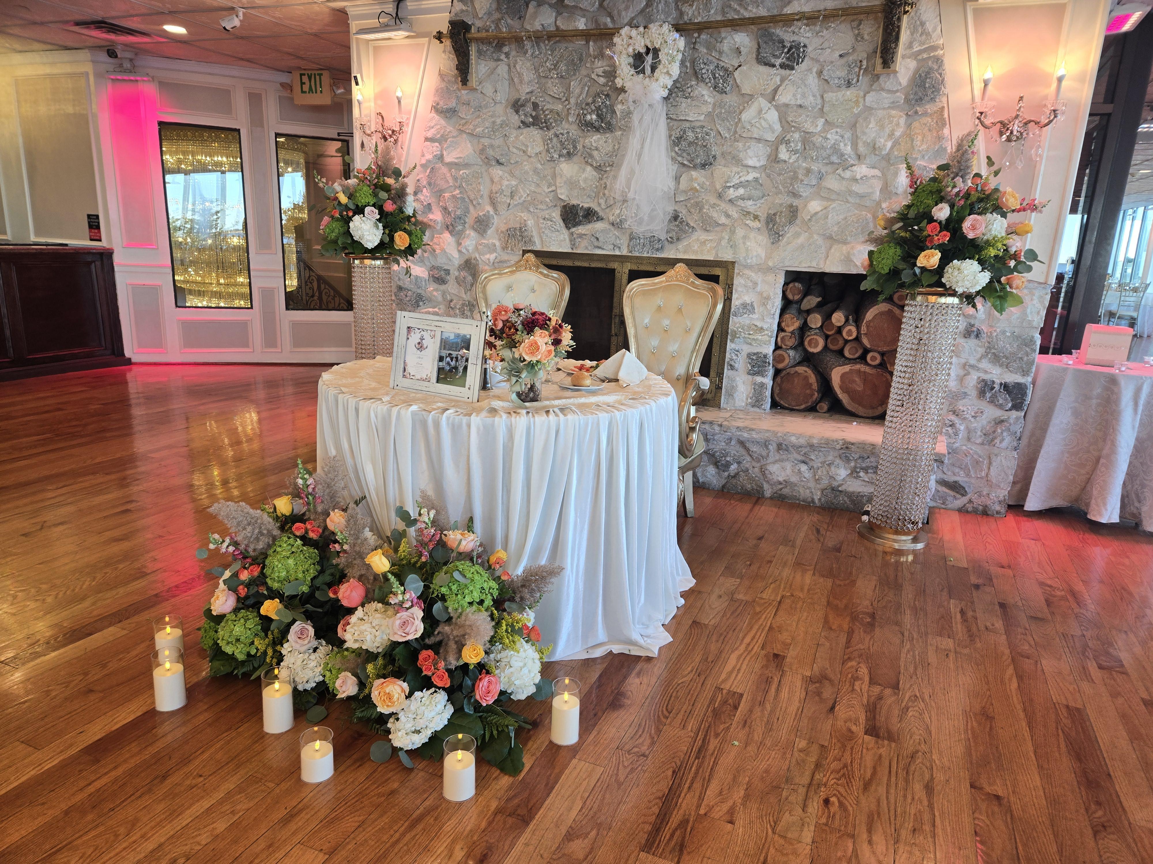 Chateau La Mer, located on the Great South Bay in Lindenhurst, NY, is a premier waterfront wedding venue. Surrounded by shimmering bay waters, landscaped gardens, and peaceful waterfalls, this elegant location offers exclusive indoor and outdoor areas for your special day. Our attentive, skilled staff provide exceptional service to ensure a seamless experience. The venue features scenic settings, including an outdoor veranda with floral decor, bronze-tone seating, and a glass-walled cocktail room overlooking the bay. Below, our Waterside Patio, complete with a gazebo and gardens, is ideal for ceremonies. Our grand ballrooms, adorned with imported marble, granite, crystal chandeliers, and expansive windows, offer stunning bay views to make your celebration unforgettable.
