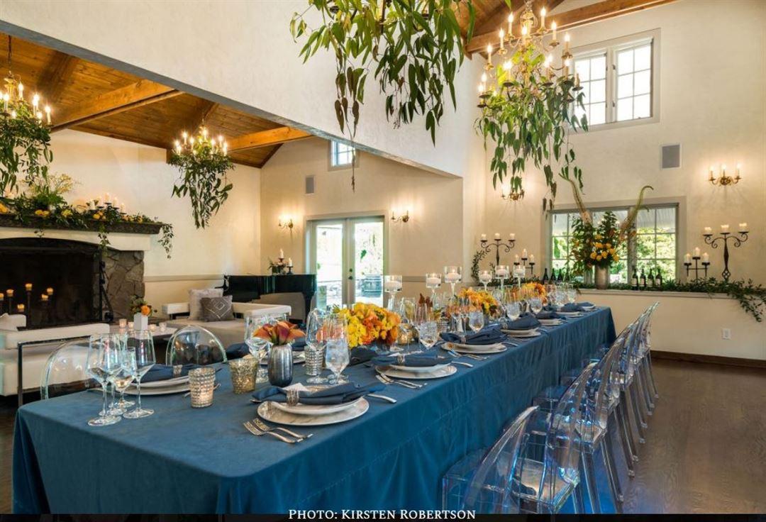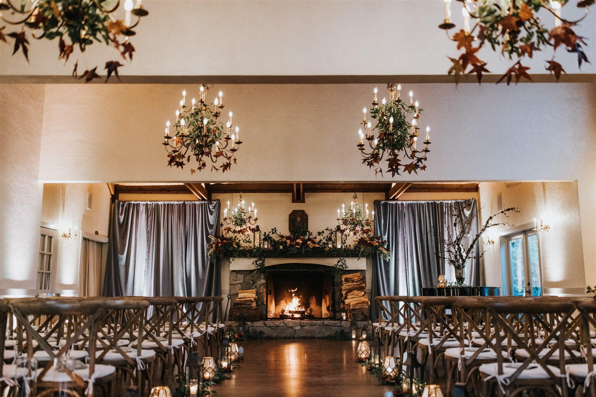 The grand room opens into an expansive old-world style terrace, a short walk away is a hidden lawn nestled among cedars, which provides a private setting for your ceremony.