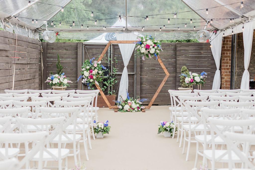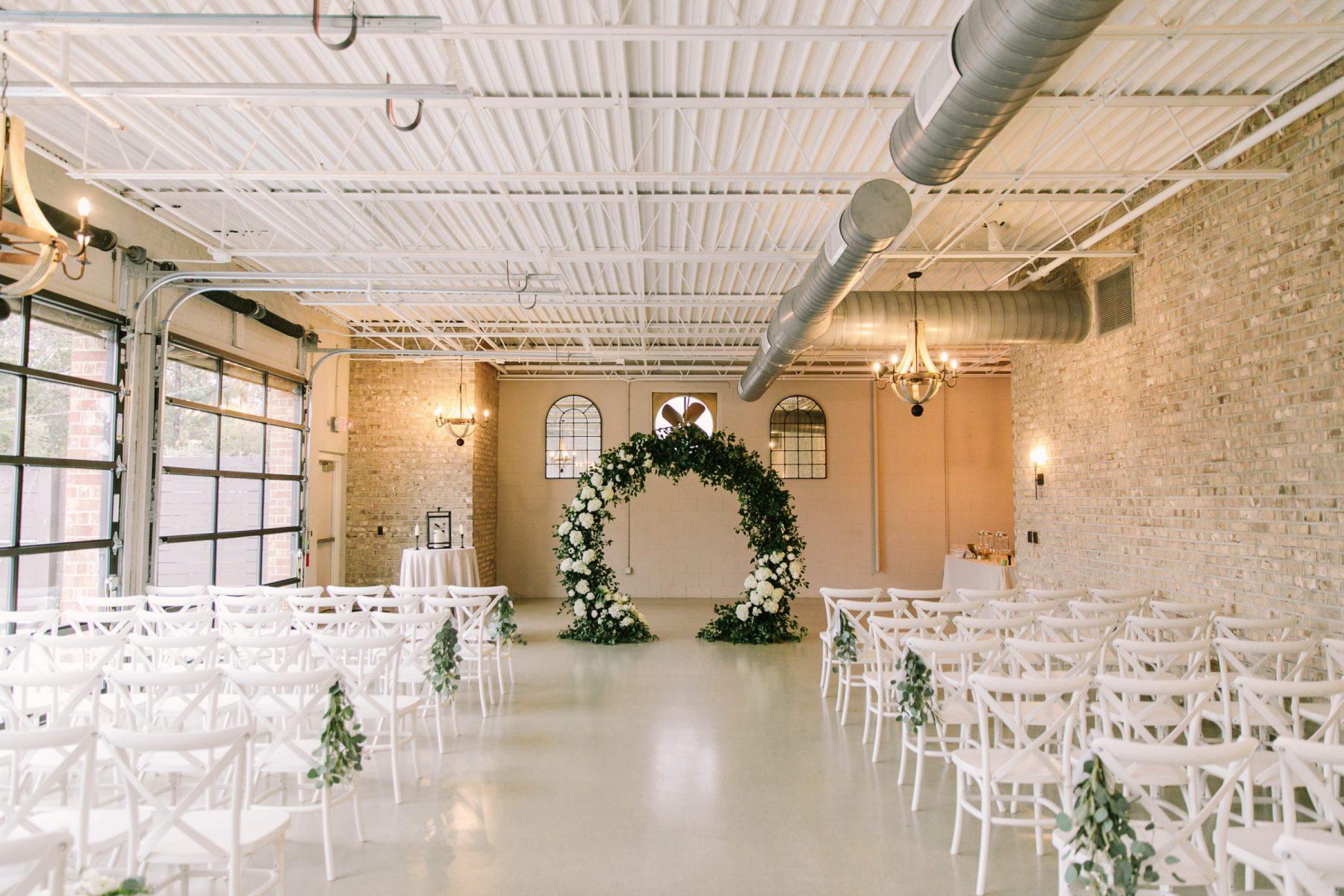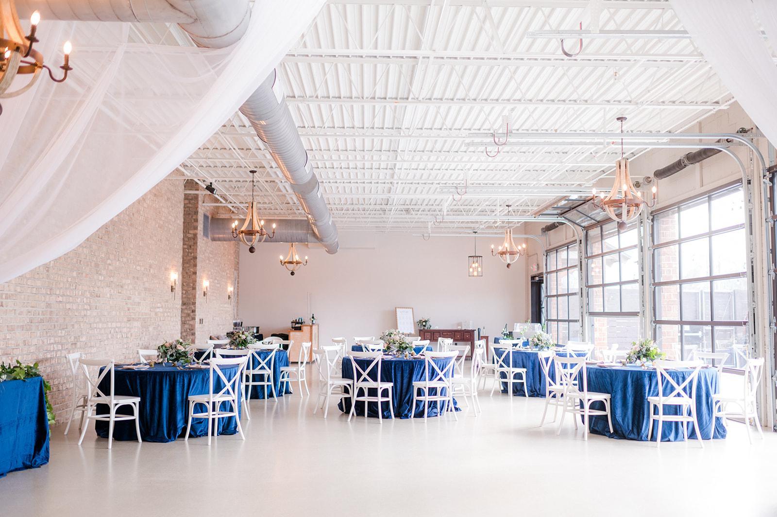 The main venue of Chatham Station is 4,500 square feet of open space with elegant finishes. It includes exposed brick, high ceilings, and 7 garage doors that bring in all the natural light.