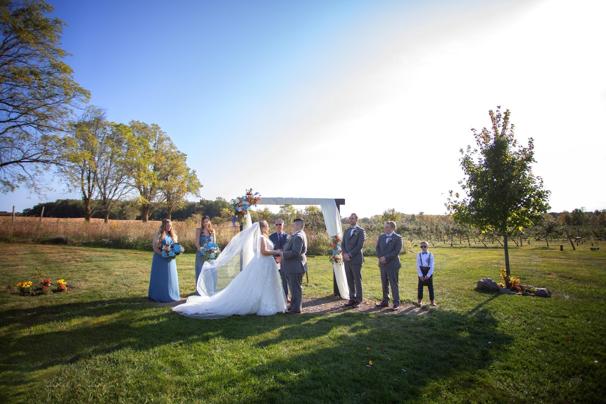 We are a stunning apple orchard, farm venue with a historic barn on 12.5 acres between Lansing and Battle Creek. Our farm animals have won the hearts of many couples over the years. Say "I do" in front of our 8-acre apple orchard followed by photos along our rose garden and dance the night away in our historic barn. Our amazing staff with 12+ years of experience is here to make your day the best!