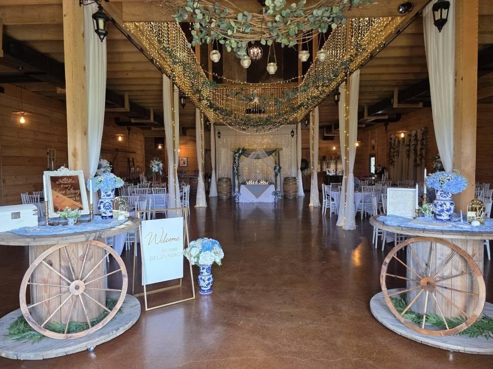 Nestled in the heart of the rolling countryside, Cherry Farm offers an astonishingly beautiful event venue that exudes rustic charm and elegance. Built in 2017 by the determined Cherry family, our newly constructed facility provides a warm and inviting atmosphere to make your special day truly unforgettable. We are a thriving venue built on a passion for creating perfect, unforgettable experiences. For guests wishing to make it a weekend escape, we are thrilled to offer our newest addition: a luxurious 12-bedroom Lodge, providing the epitome of southern comfort and convenience.