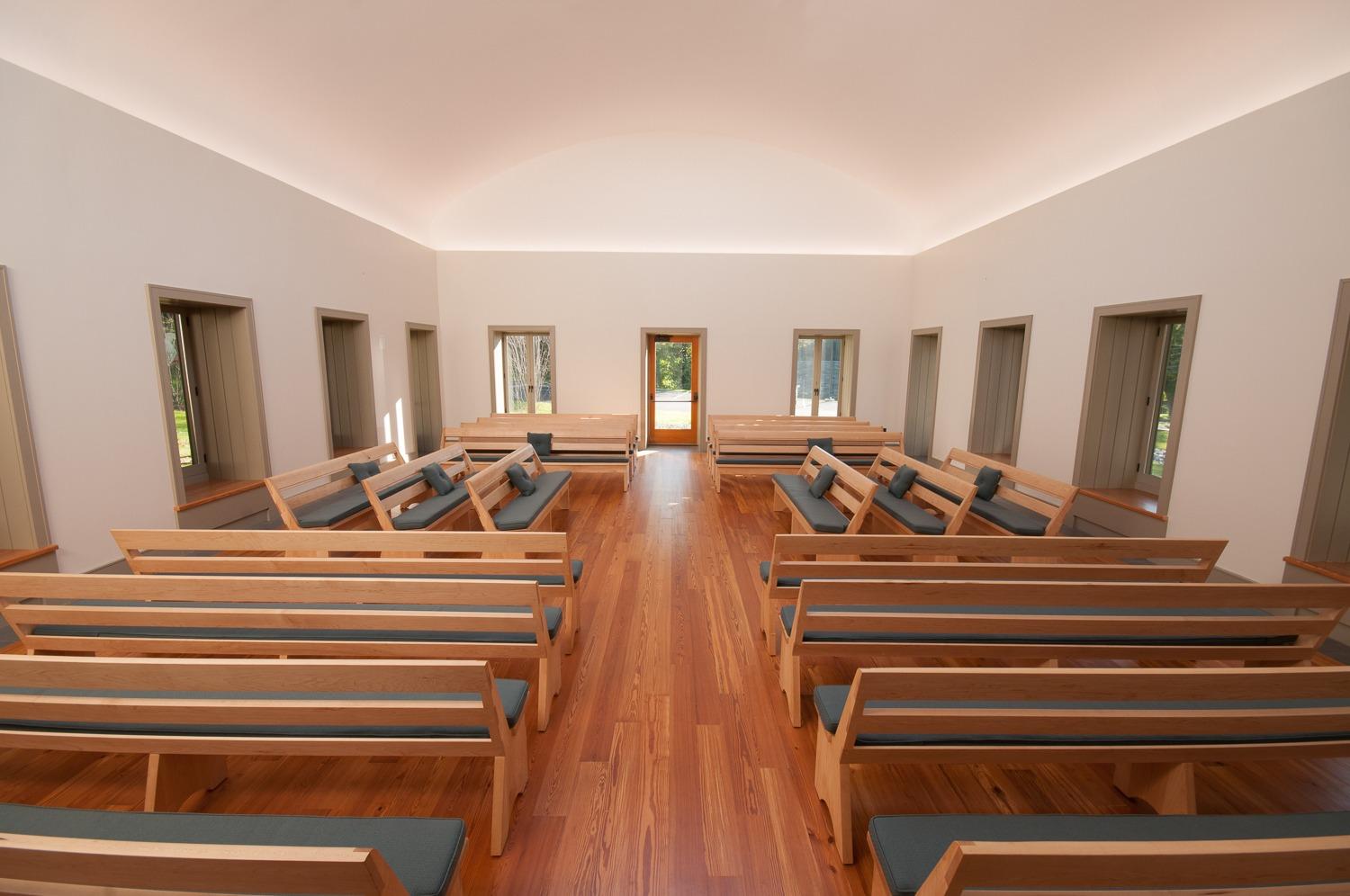 Nestled near Fairmount Park, the venue features beautiful, light-filled spaces perfect for honoring life’s most cherished milestones. The Worship Room, ideal for wedding ceremonies, is surrounded by windows and benches and includes the breathtaking “Greet The Light” Skyspace installation—an unforgettable experience for couples and guests alike. (Capacity: 120 seated) The spacious Social Room, with its exposed wooden trusses and views of nature, provides a warm and elegant backdrop for receptions and gatherings. (Capacity: 96 seated at tables or 150 auditorium style) A fully equipped kitchen is adjacent, ideal for caterers to prep and serve with ease. Smaller spaces like the Gathering Room (20 guests) and the Committee Room (6–12 guests) are perfect for bridal lounges, quiet moments, or intimate meetings. Upstairs classrooms offer flexible layouts for kids’ areas or breakout needs.
