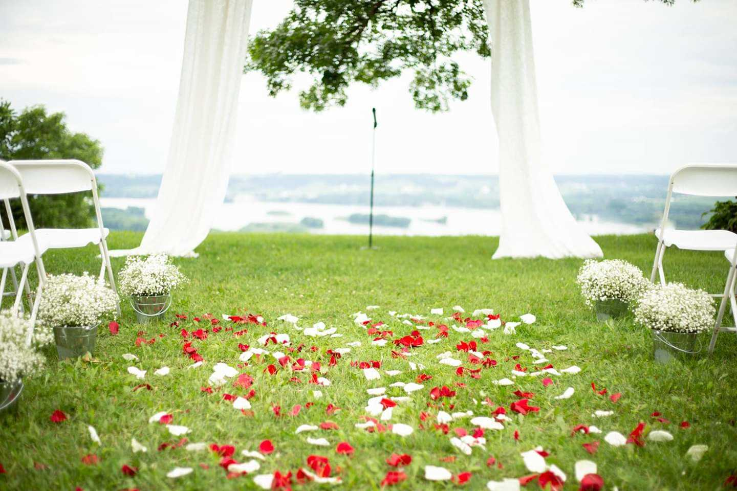 Sunset Garden Ceremony offers a beautiful view of the Mississippi River conveniently located next to the lodge and Sunset Garden Tent.