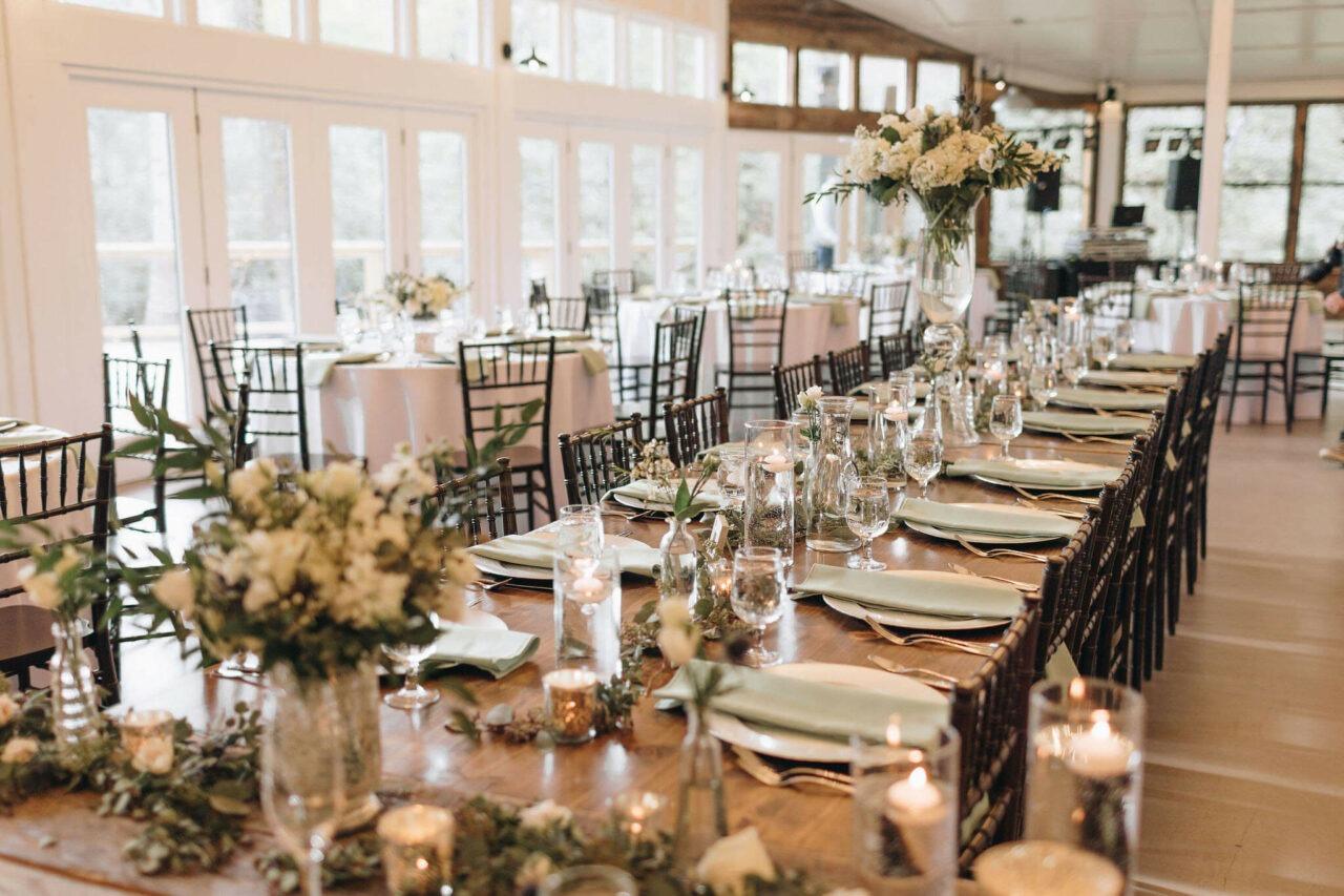 This is the moment both you and your guests will experience if you choose to hold your ceremony in our outdoor space. An archway of braided branches, flanked by tall hedges serves as a whimsical procession entrance. Your vows and rings will be exchanged with the scenic backdrop of mountains and Lake Glenville.