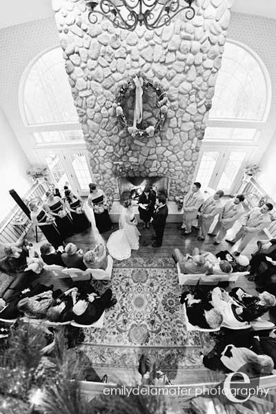 The Carriage House lounge with its large fieldstone fireplace framed by French doors has an elegant, yet relaxed atmosphere and is the perfect wedding venue in Jackson, NH for an intimate elopement as well as larger wedding ceremonies of up to 85 guests. The lounge can be adapted for theatre-style seating for 70 guests while the upstairs balcony can seat another 15 guests, leaving plenty of additional standing space.