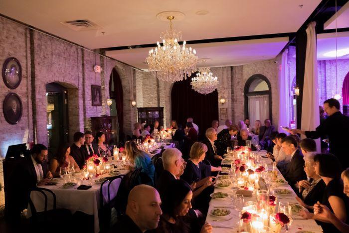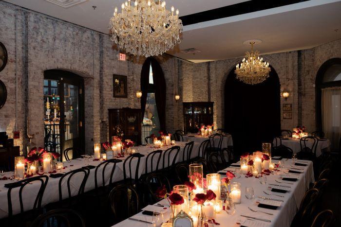 Our striking main dining room can accommodate up to 120 guests for a seated event or 150 for a standing reception. This versatile space can be transformed for almost any layout and is a wonderful backdrop for a wedding ceremony, with an aisle set up under the golden chandeliers. A buyout of the space includes our main bar and lounge area featuring a historic wooden bar complete with premium Italian and local spirits.