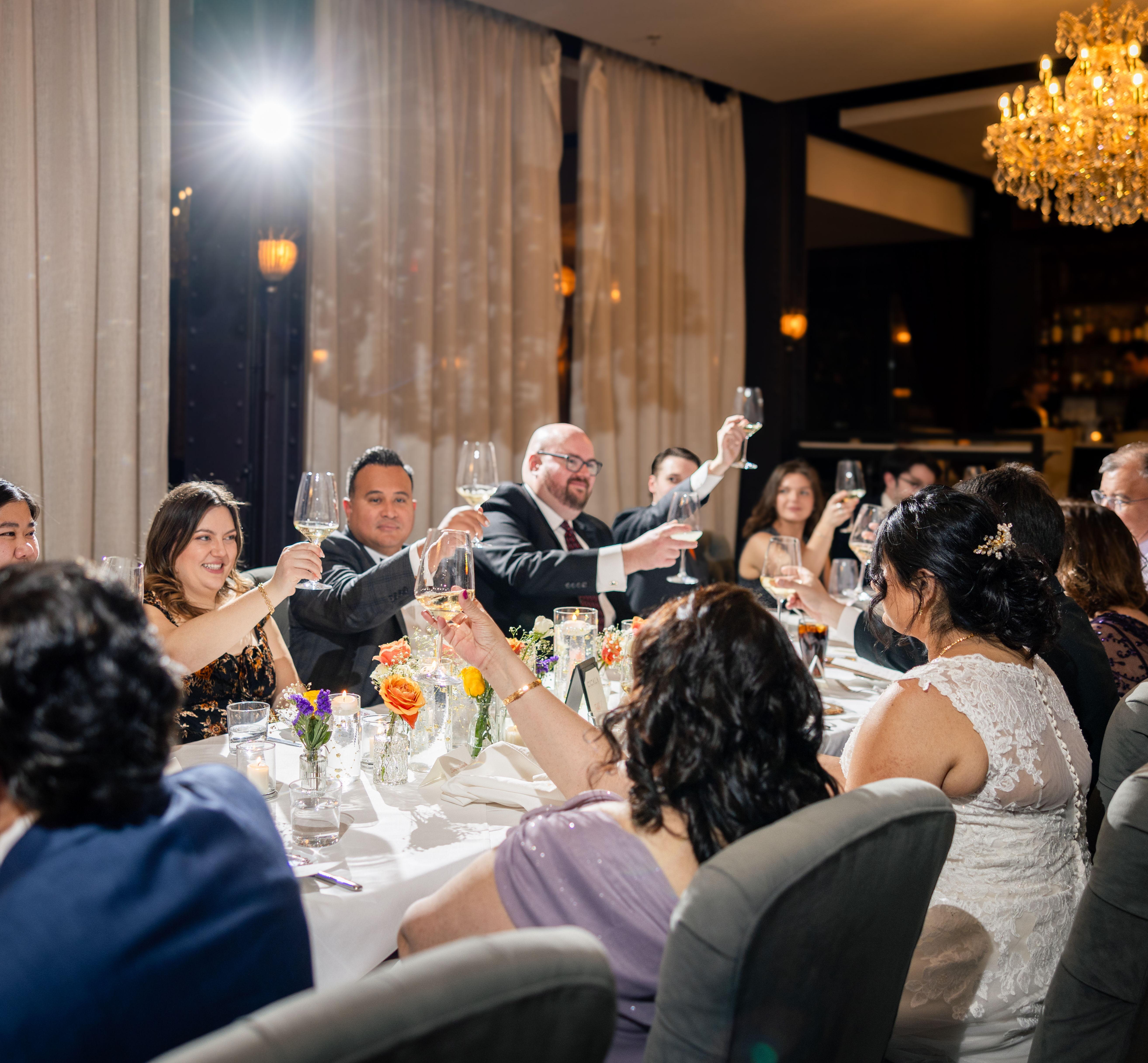 Host your ceremony under the chandeliers in our Main Dining Room, the 10th Floor Corner Penthouse, or al fresco on our Patio. Guests will then enjoy bites and cocktails in the Cicala Bar & Lounge before heading (back) up for a beautiful and intimate seated dinner with views of the city.
