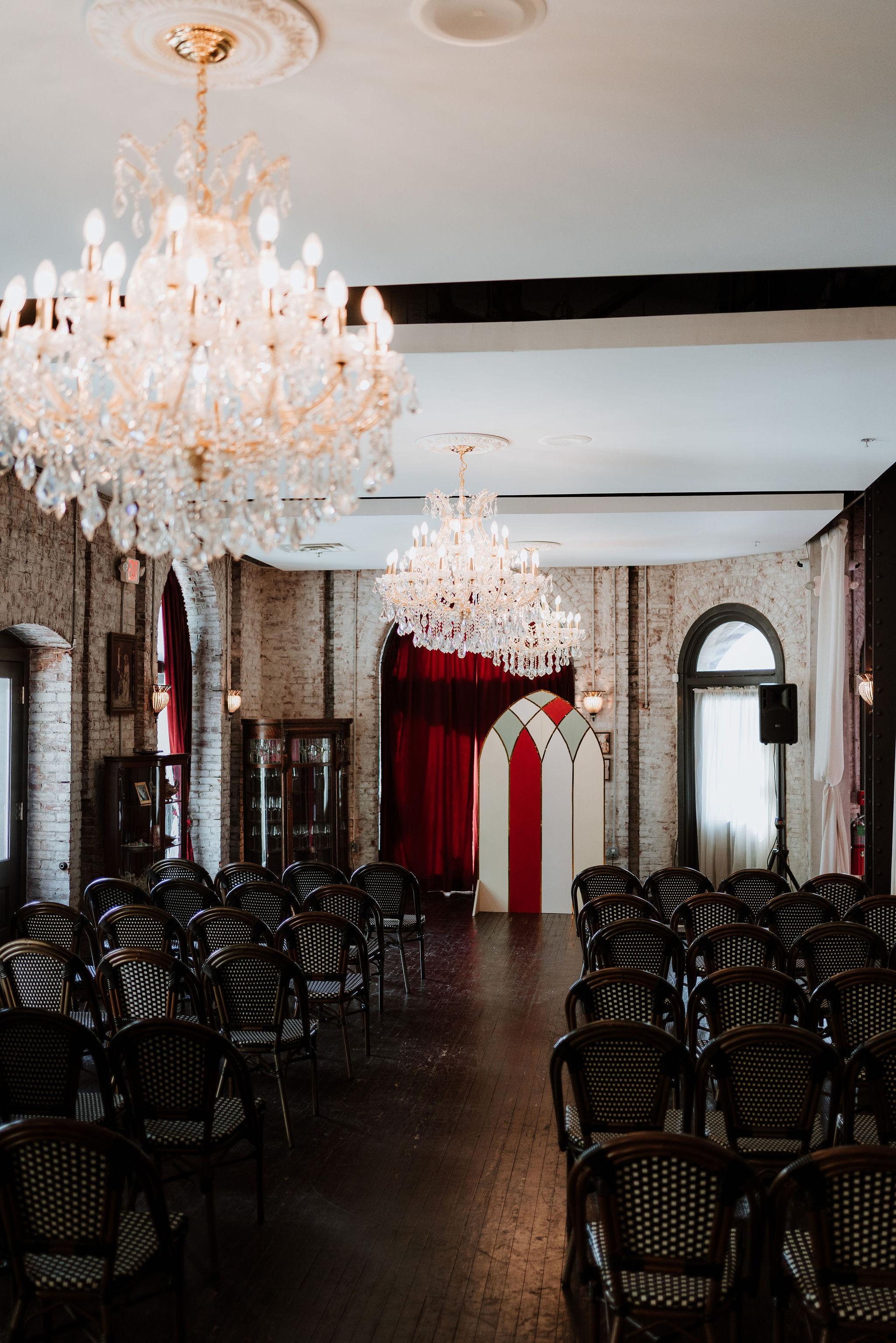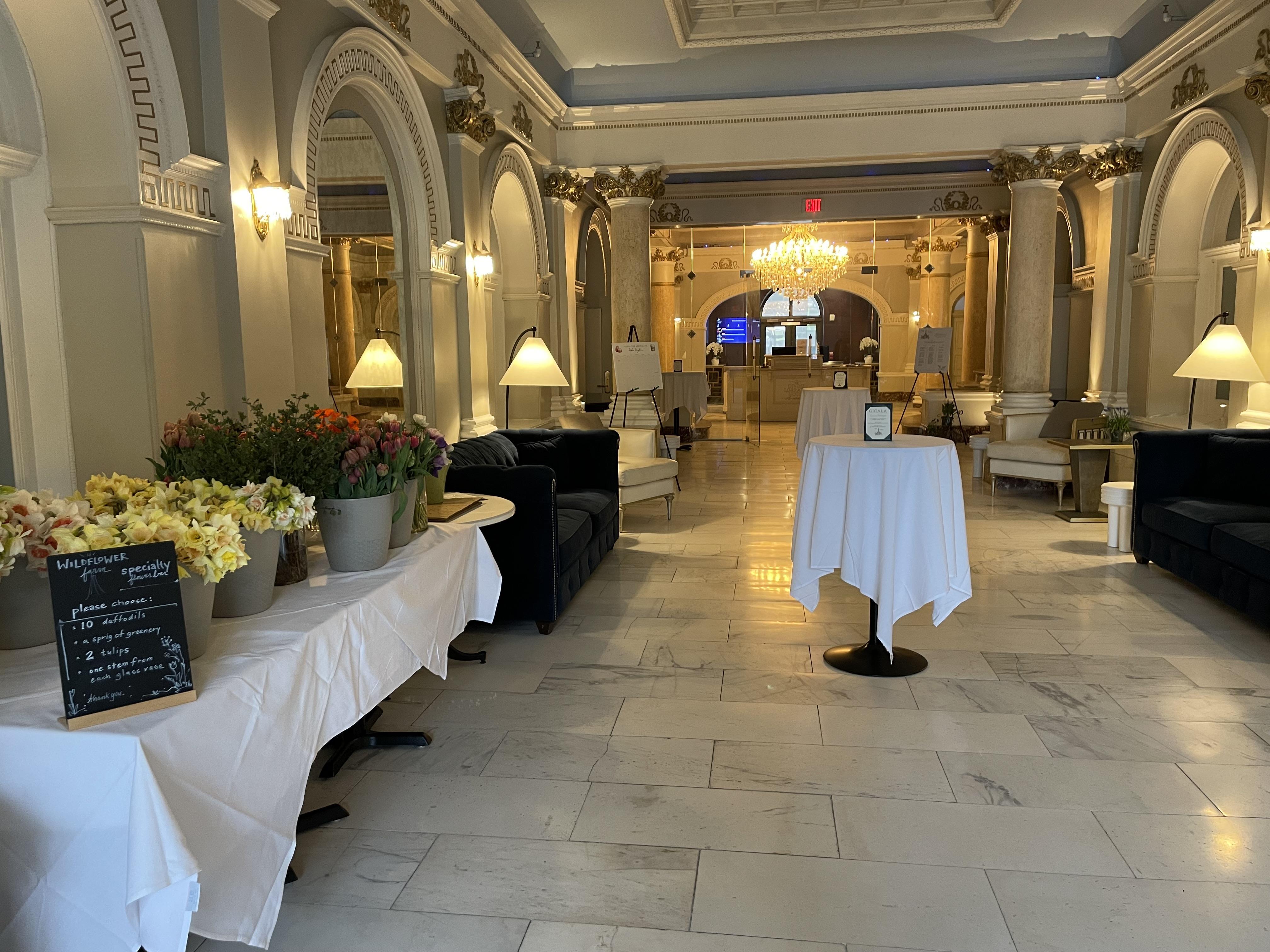 The Divine Lorraine is a Philadelphia landmark, and the striking main lobby space is available to be added on to an event in the Cicala Dining Room or Sorellina Space. The lobby is perfect for a wedding ceremony or cocktail reception for up to 75 guests.