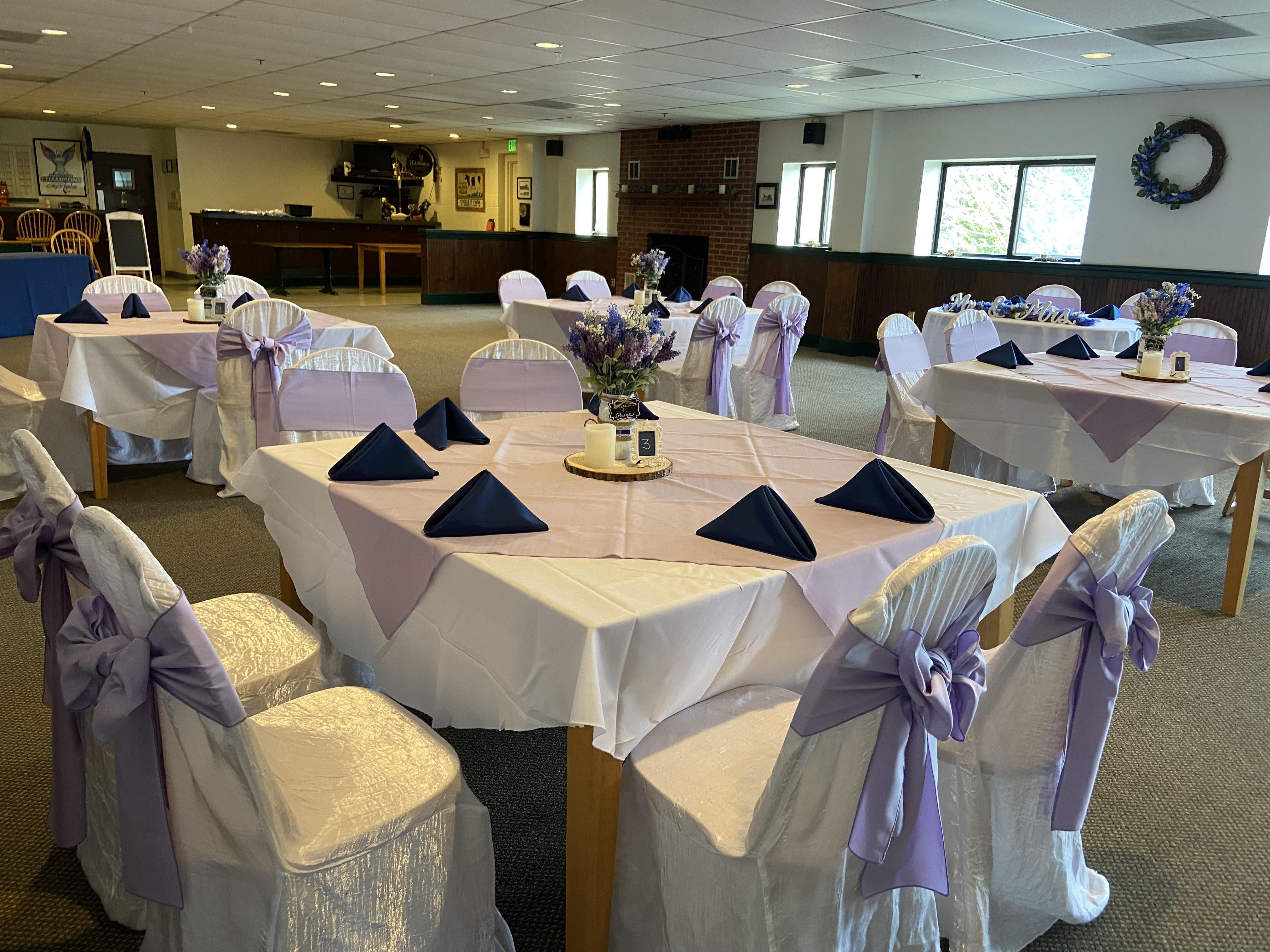 All the Comforts in Our Indoor Wedding Venue Spaces: • Host larger weddings up to 250 guests in our Meadowview banquet room • Customize the decor in either indoor space for a personalized wedding • Sit among large fireplaces for conversation, drinks, and photo ops • Fit your favorite band or DJ for a long night of dancing • Get the perfect photo every time with natural lighting from tall windows • Handicap accessible for every guest to enjoy the festivities