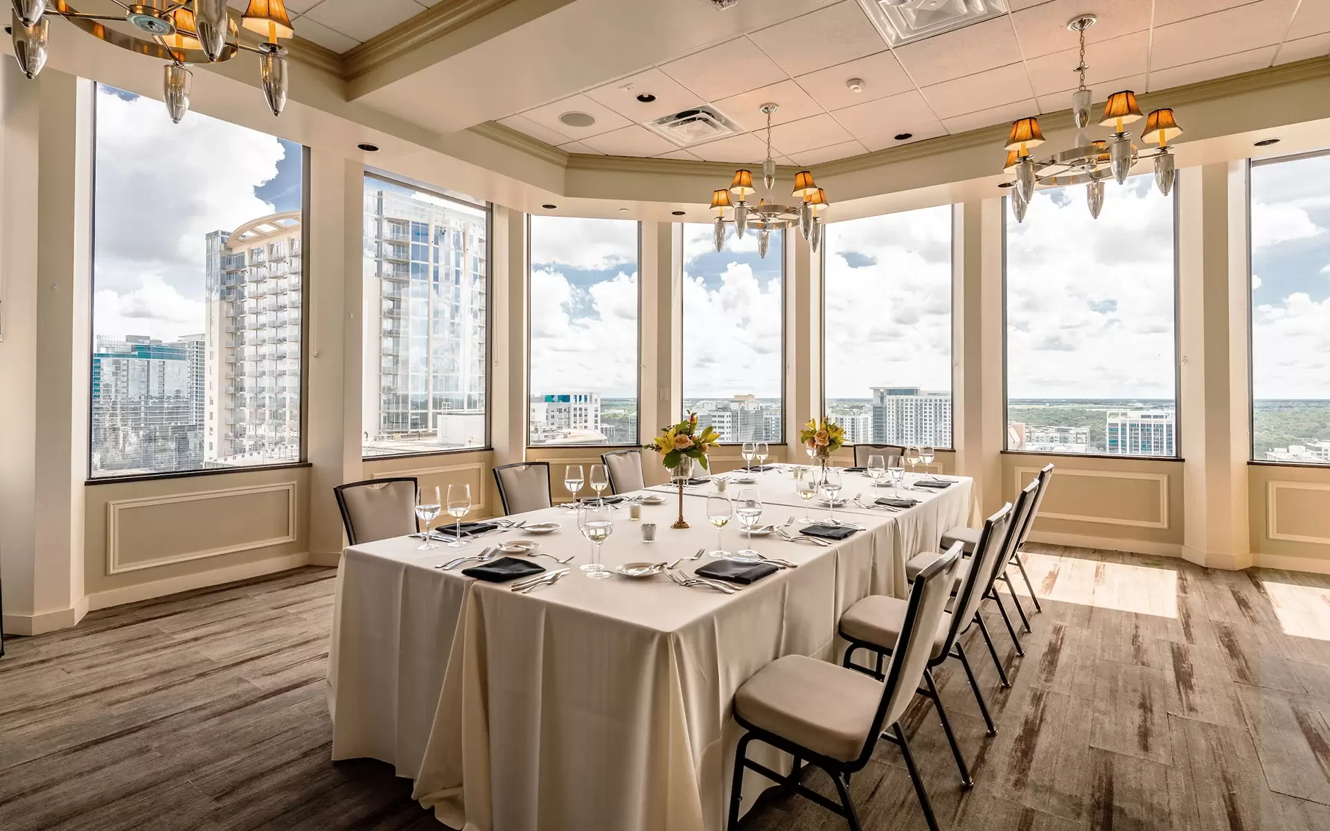 Elevate your Orlando events to new heights of sophistication at Citrus Club. Unlike other venues, we offer a guest-gasp guarantee. What’s that? We’re glad you asked. Our first-class service, delectable cuisine, and spectacular downtown Orlando views are sure to leave your guests awestruck. With 7,127 square feet of meeting rooms and event venues, Citrus Club caters to corporate and social events of every scale and type – the sky’s the limit.