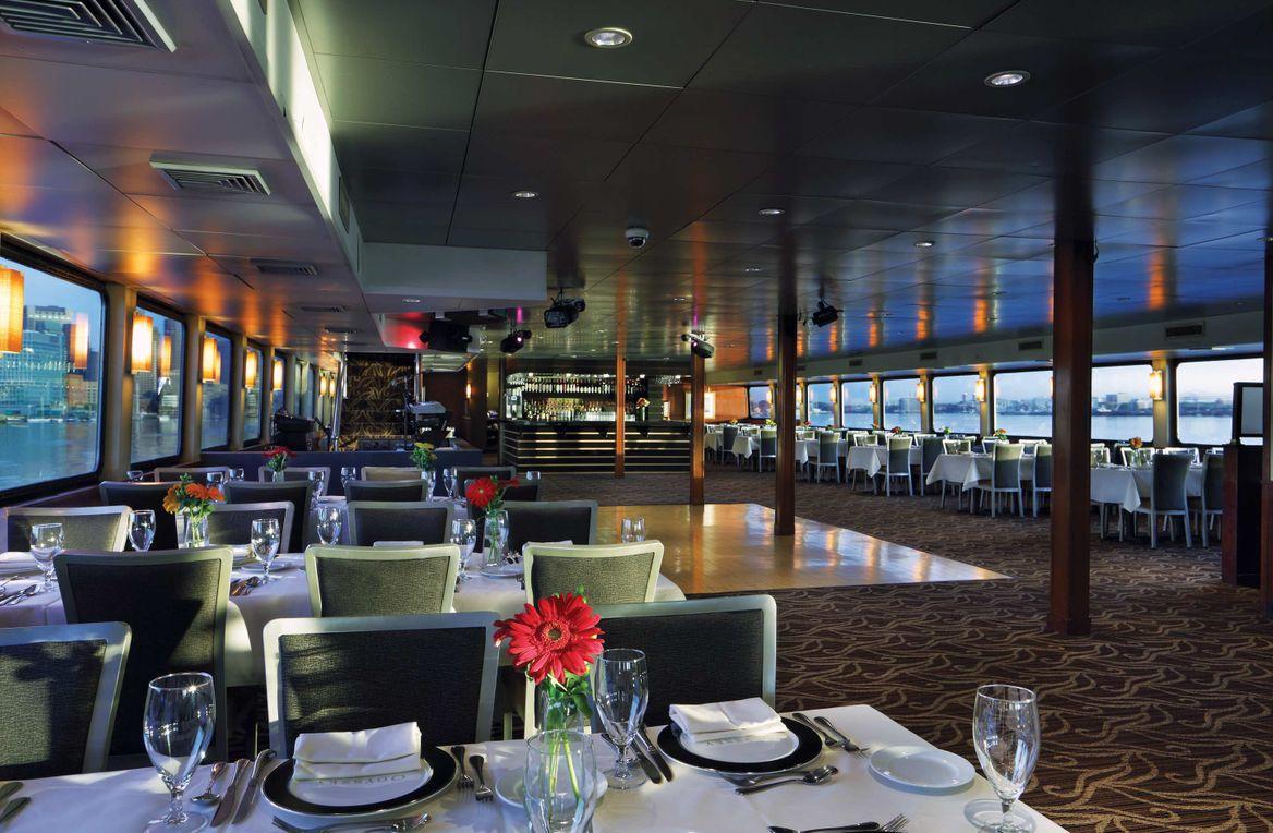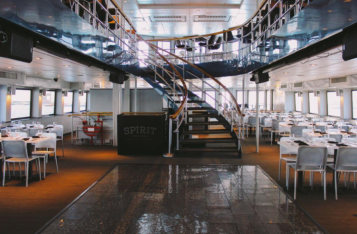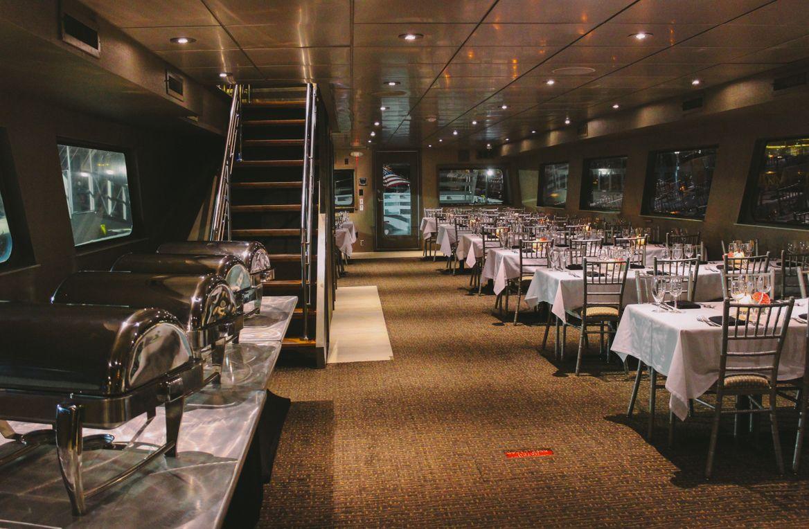Experience the ultimate dining voyage aboard The Spirit of Boston: a luxurious four-level vessel featuring three climate-controlled dining decks and two exterior observation decks. Indulge in buffet-style cuisine while enjoying DJ entertainment and interactive games. Elevate your perspective on our Skydeck for unrivaled views of Boston, or retreat to the split second-level deck for panoramic vistas both indoors and out. With an elegant dining deck and ample outdoor space, every moment is set for an unforgettable experience.