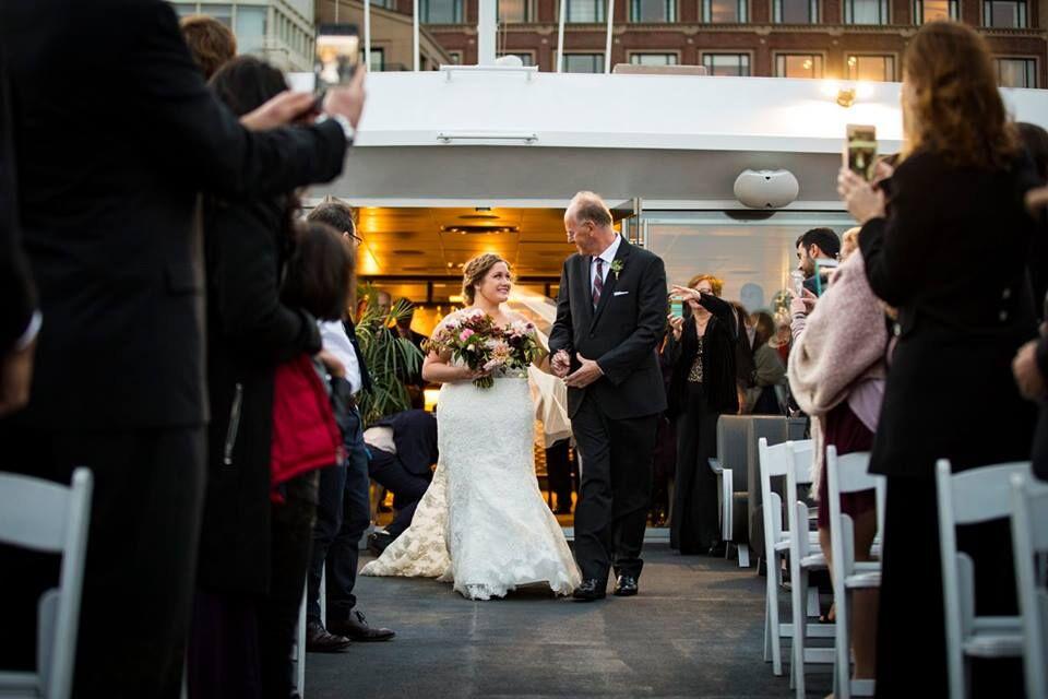Begin your happily ever after with the Boston skyline as your backdrop. Picture your romantic rooftop ceremony, offering panoramic views of Boston’s famed city landmarks, and historic waterfront, followed by a lively reception indoors where dining and dancing await in our stunning interior space. Come aboard and turn your wedding celebrations into unforgettable experiences with breathtaking on-the-water views of Zakim Bunker Hill Memorial Bridge, Boston’s Seaport District, the USS Constitution, and more from Boston Harbor! Our vessels offer an all-inclusive experience, perfect for a rehearsal dinner, engagement party, bridal shower, brunch, or vow renewal. Delight in exceptional hospitality, ensuring your wedding-related event is your dream come true. Let our dedicated team expertly handle the planning, leaving you free to come aboard, raise a toast to your love, and revel in the joy of your union.