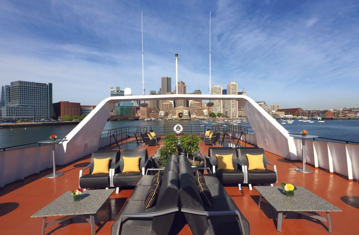 The Boston Odyssey is our most elegant dining vessel on the Boston Harbor: a sophisticated four-level vessel with three climate-controlled dining decks and two exterior observation decks. Onboard, guests enjoy plated meals and live music to set the ambiance.