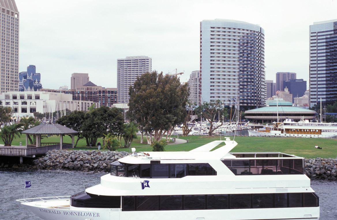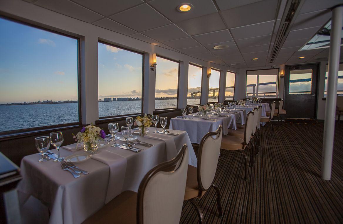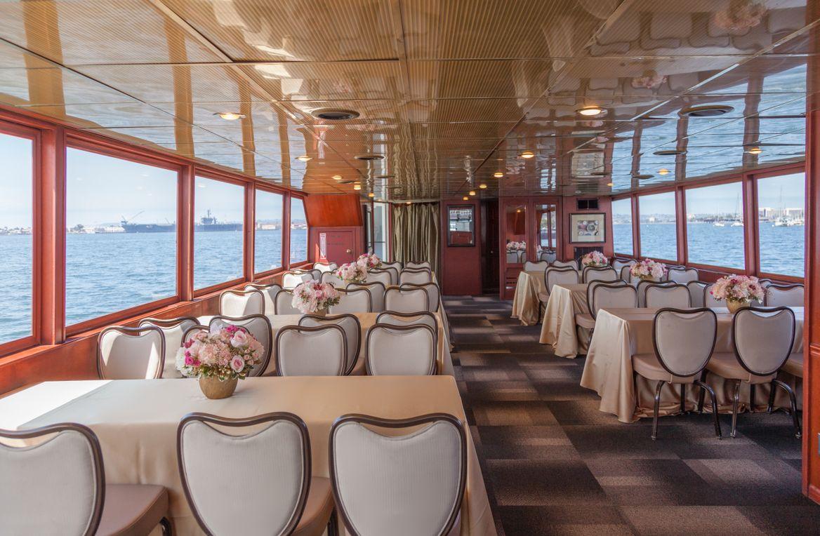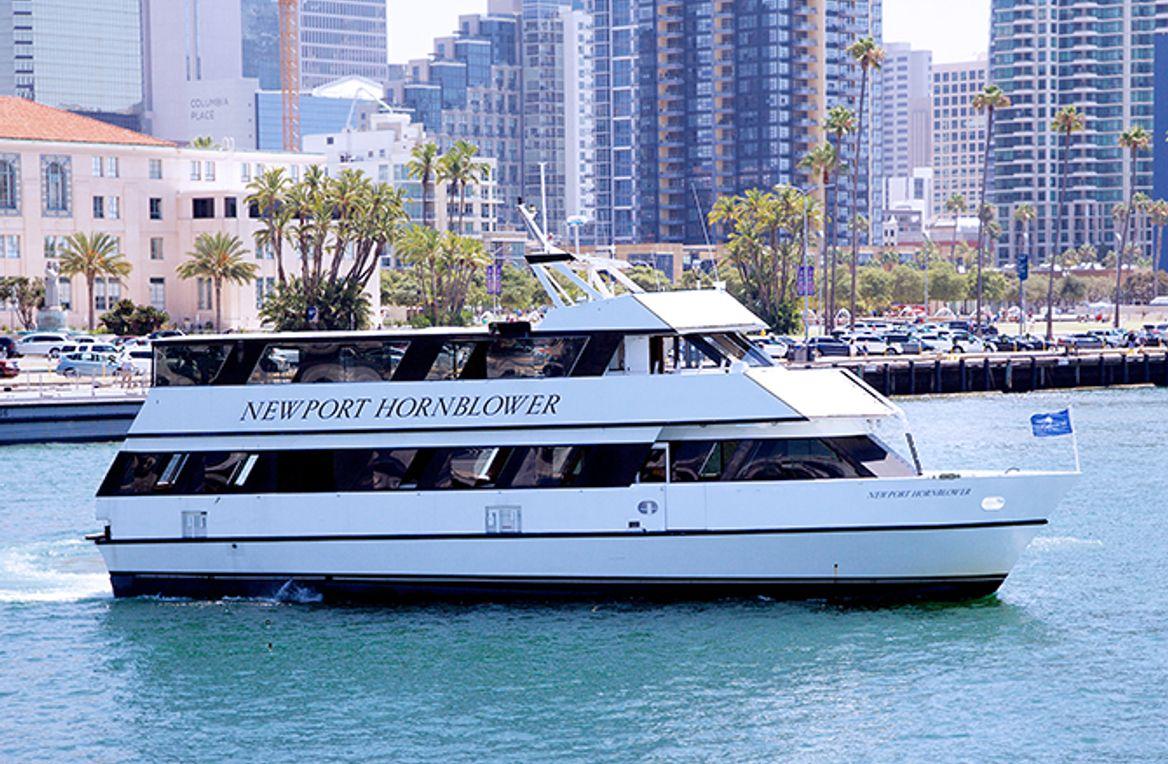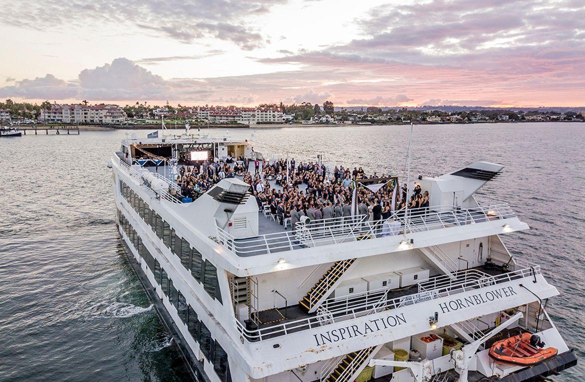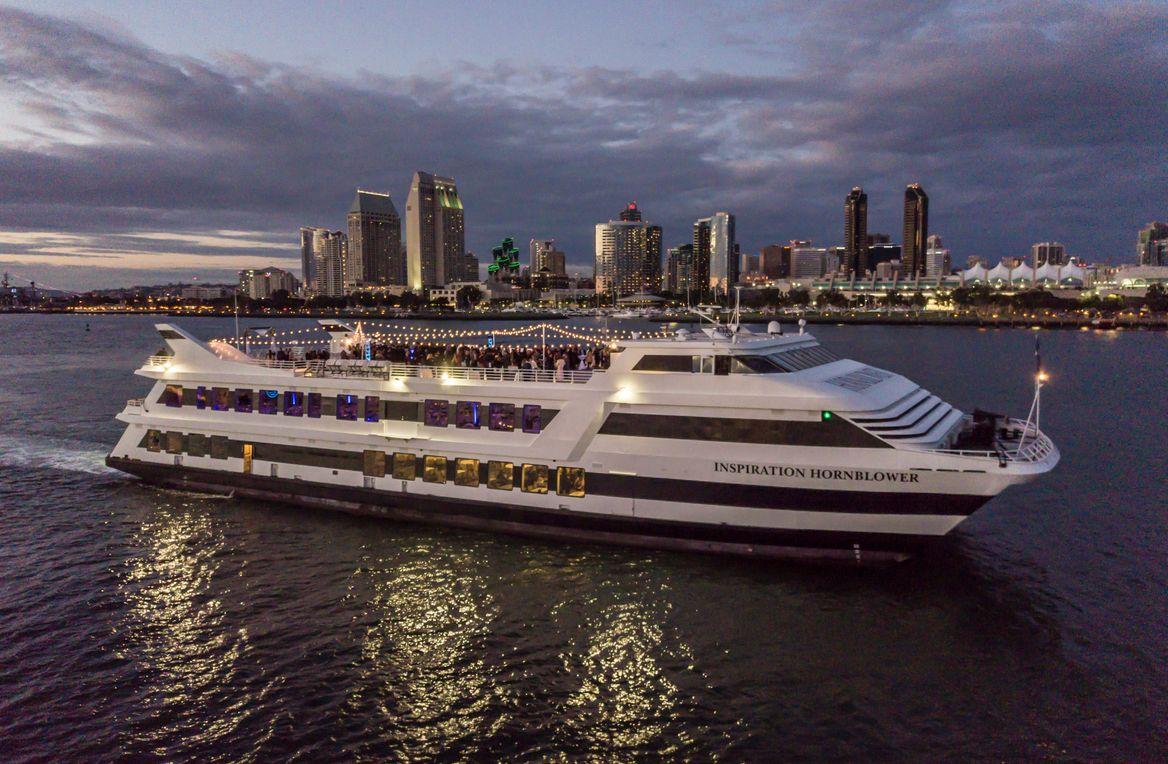 Experience hospitality, fine dining, and creative beverage service aboard the custom-built Admiral Hornblower. This luxury yacht combines 21st century technology with “Gatsby” era sophistication and 1920's elegance. Enjoy Wi-Fi throughout the ship, a ‘boutique hotel’ style Captains Lounge, climate-controlled salons, expansive sun decks with panoramic San Diego vistas, three bars, two dance floors, and seating for up to 420 guests.
