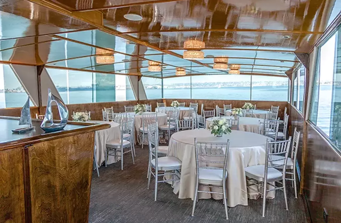 Fully reimagined and redesigned, the Admiral Hornblower is a luxurious venue for weddings on the water, featuring a modern yet timeless design.
