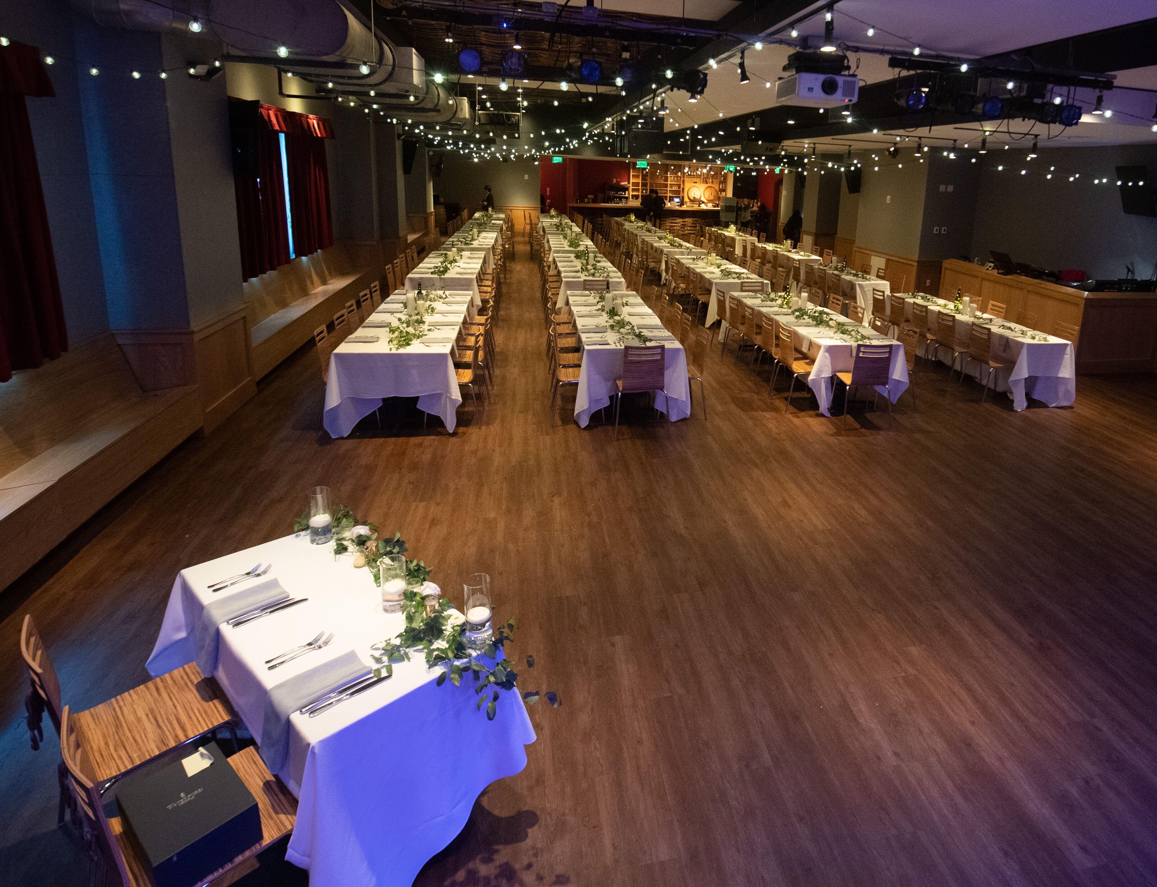 This versatile space features modern amenities including our top of the line Meyer sound system, Ketra lighting system, full private bar and a stage.