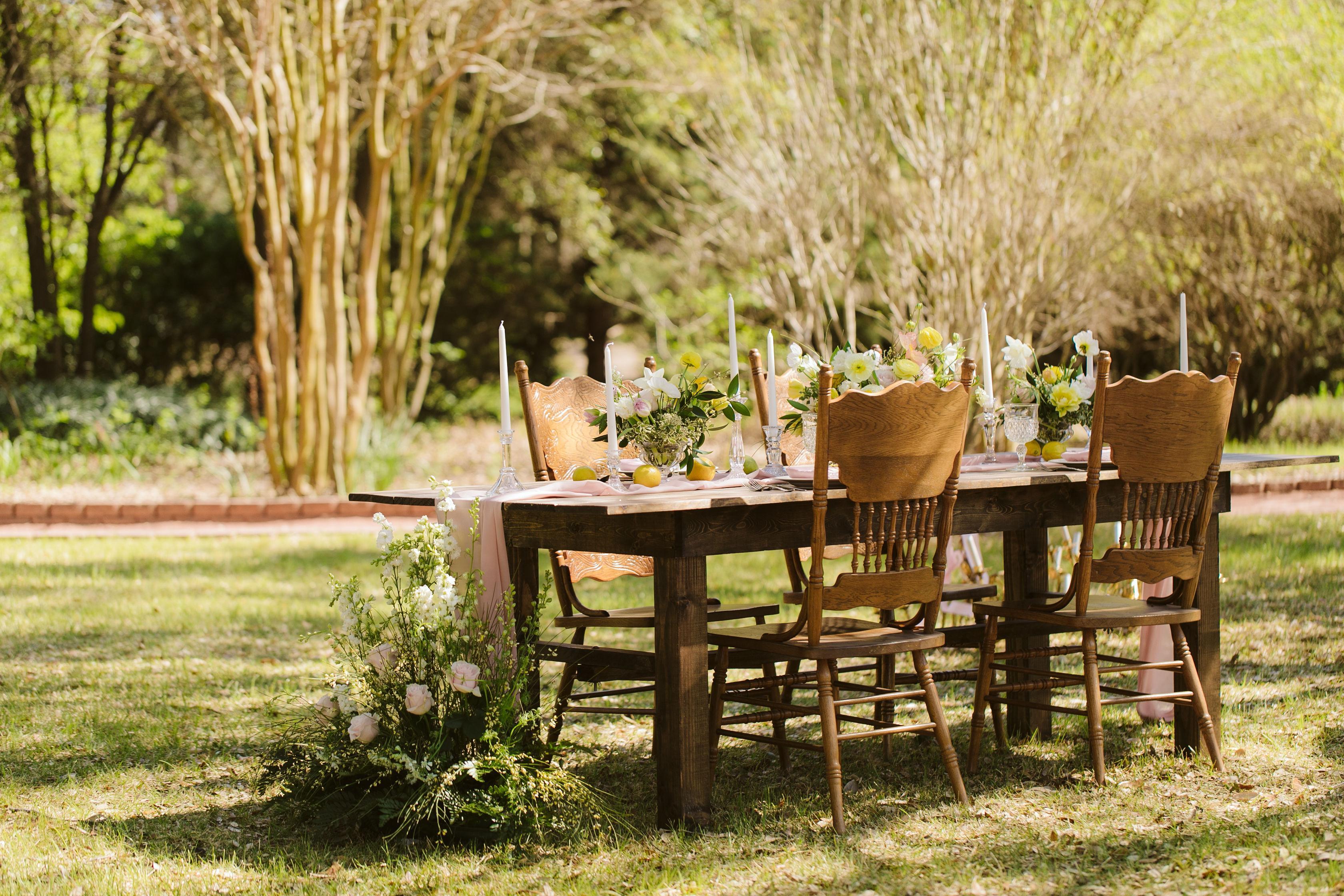 - Ceremony chairs - Reception tables/chairs (if reception is located here) - Dance floor (if reception is located here) - Café lights (if reception is located here) - Path lights