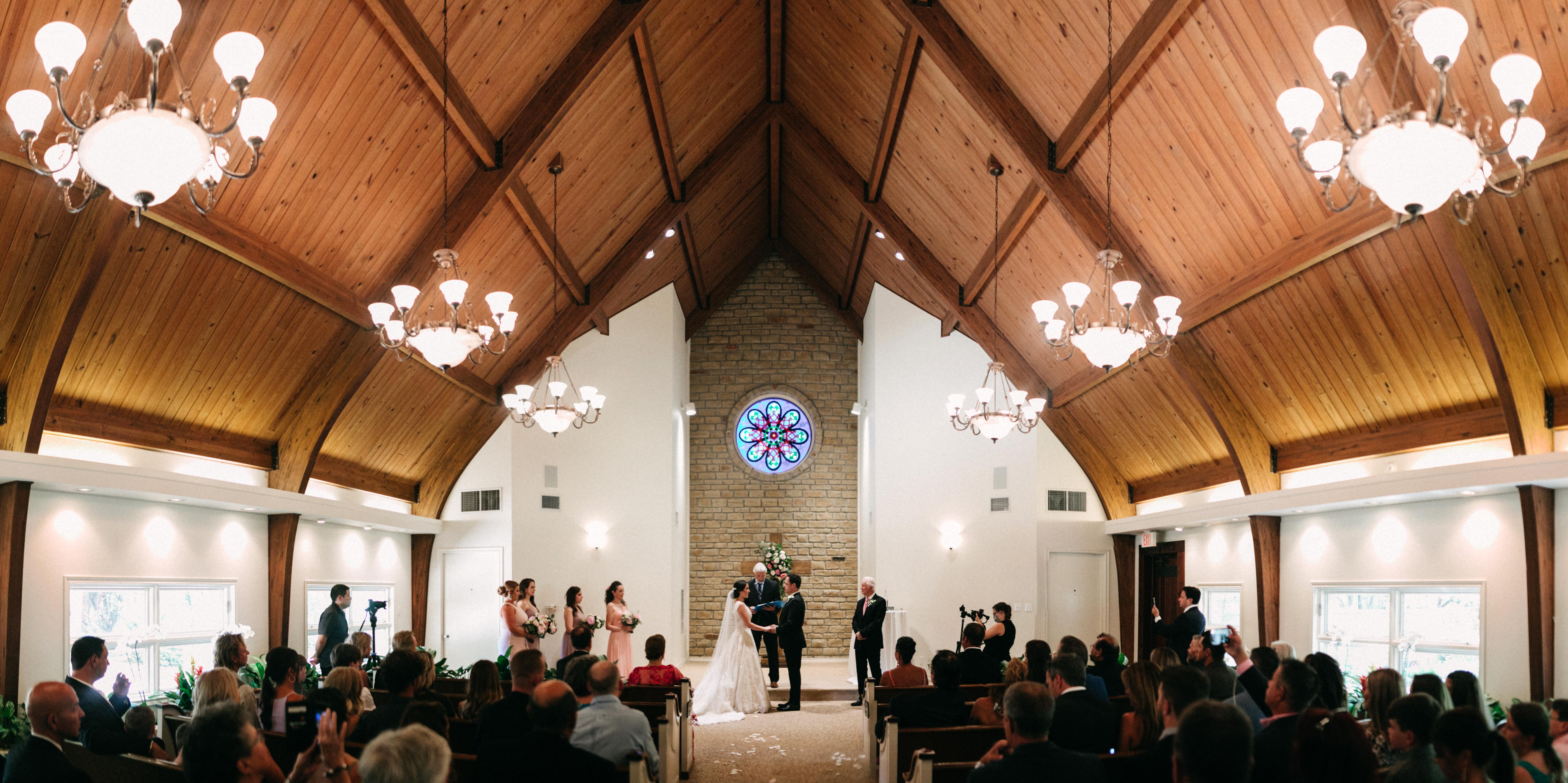 Natural light streams through the windows and beautiful stained glass of our picturesque sandstone chapel. The pews accommodate 80 guests, and chairs can be added to seat up to 100.