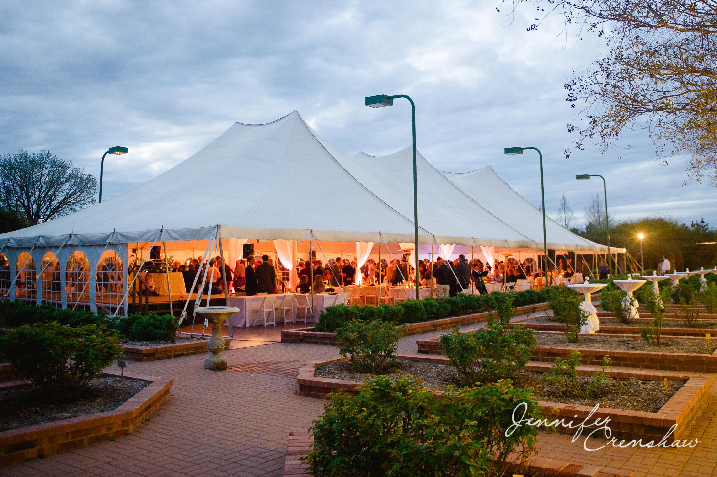 This spacious 6,000 square foot permanent facility is a supreme reception space at Clark Gardens. Surrounded by antique roses, this beautiful facility has views overlooking the Channel Garden. The East Tent includes chandelier lighting, a permanent stage, dance floor, and bar area, which can accommodate up to 300 guests.