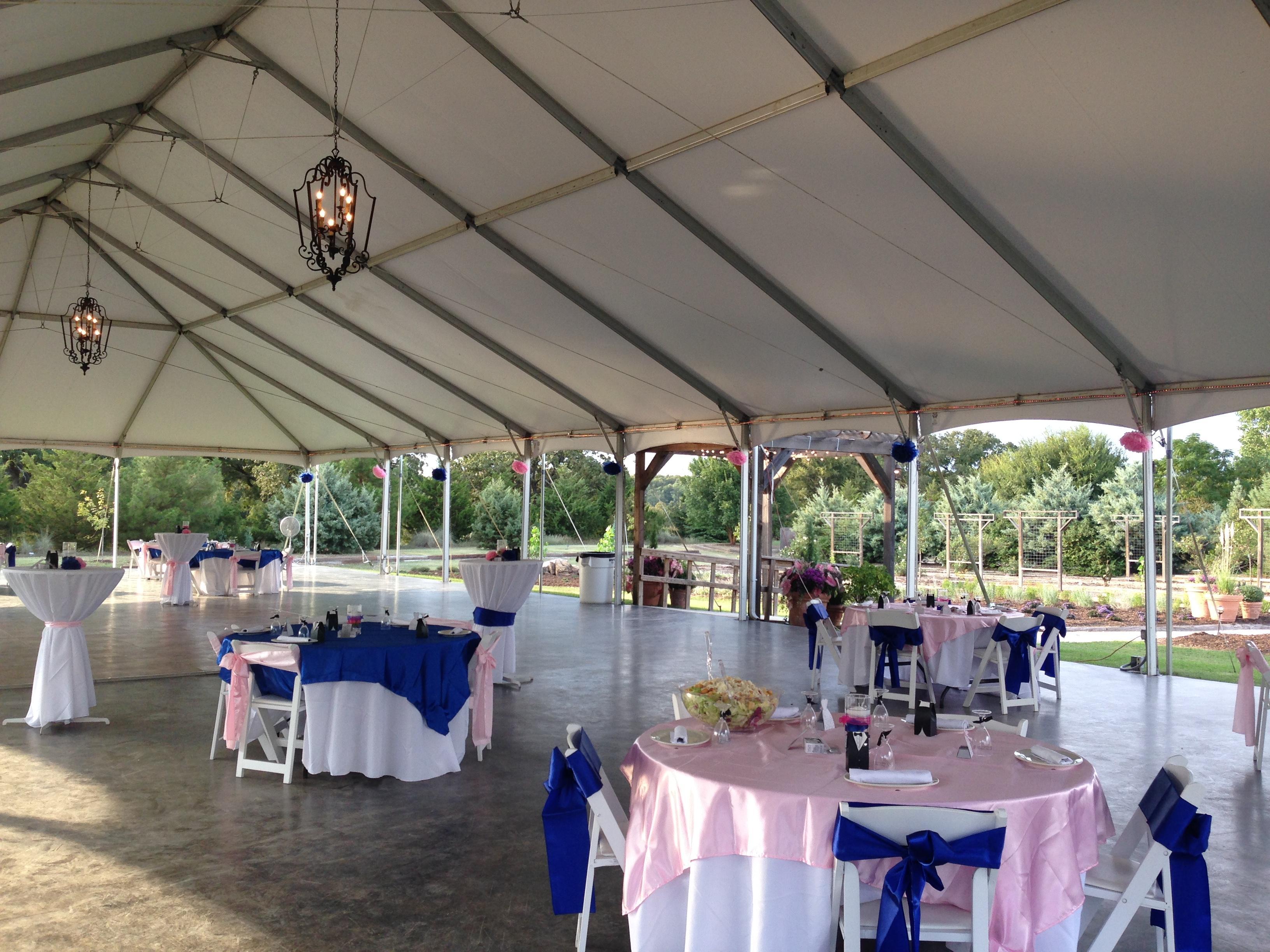 The West Tent is a 5,000 square foot permanent tent amidst the Iris and rose beds. The entire tent is fully surrounded by gorgeous blooms. It includes chandelier lighting, a stage, a dance floor and a bar area, accommodating up to 150 guests.