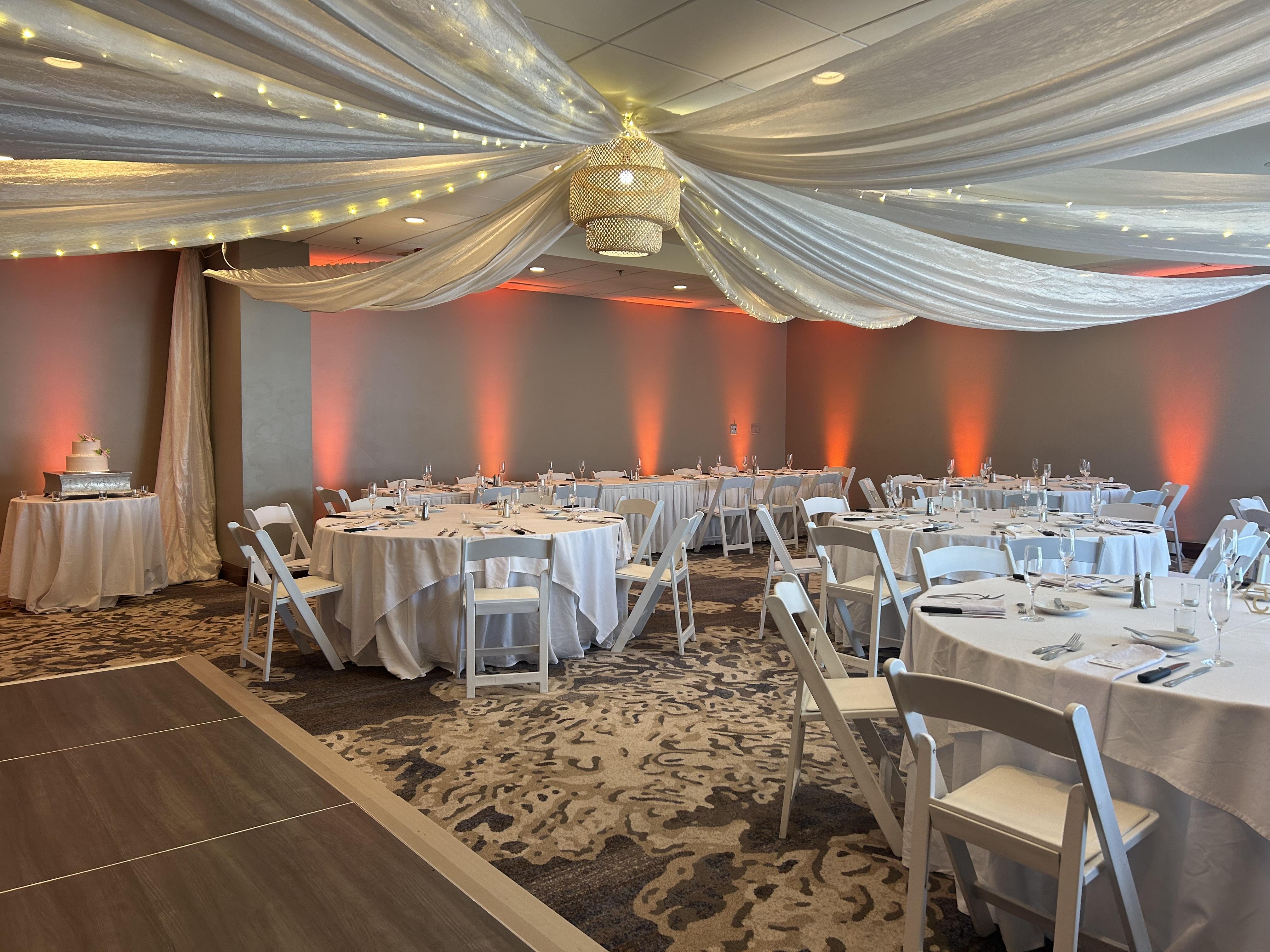 The place was great. I wanted a water view for the reception, but had to sacrifice that in exchange for all that this place had to offer. The ballroom was large with plenty of space for extra guests that we weren't planning on having. We had the entire second floor to ourselves - the main ballroom. Restrooms are right across the hallway. A nice grand, wooden staircase rolls up from the lobby to the second floor where all the action can happen. The stairway is a great spot for pictures. The lobby is large and a great place to hang out. There's room on the second-floor foyer for their wedding buffet. The buffet was glorious. The food was excellent. The service was excellent. The hotel mandated we have a wedding planner if our party guest count was greater than or equal to 40. We got one of our own anyway, and it was a good thing we did. They have rooms that can be used for the bridal party to get ready. Be sure to specify which room if you want one there, if you plan to get married onsite as well. All guest rooms are suites with views of the Intercoastal Waterway. Parking space is plentiful. The location is just south of downtown Clearwater Beach. It's a great spot and was minorly damaged as a result of Hurricane Helene, though it closed the pool bar and the jet ski rentals during our time there. Long story short, I recommend it. Take a look, see for yourself.