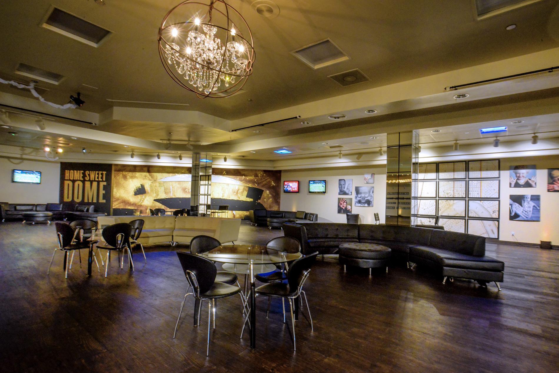 This private lounge in the heart of Champions Square provides a bold and memorable setting for an elegant downtown wedding. Built-in amenities such as state-of-the-art audio and video services and personalized GOBO lighting make the spaces eminently customizable. The chandeliers, illuminated bar, and plush furnishings create an opulent backdrop. Onsite caterer, Centerplate, is ready to delight your guests with a menu tailored to your tastes. Outside catering is permitted with a buyout fee.