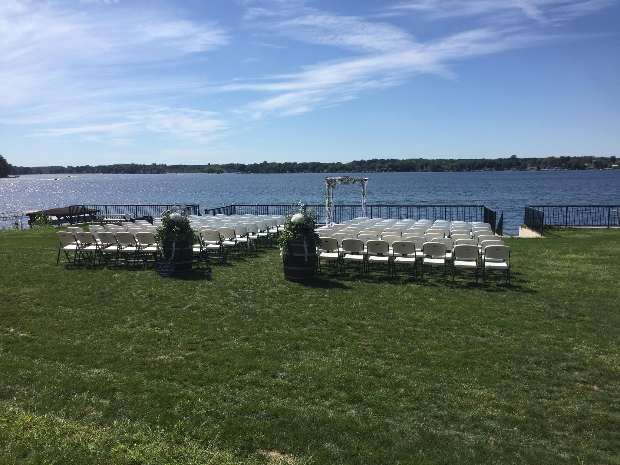 Our event room is open from May through October, offering a stunning backdrop for every part of your special day. Imagine your ceremony by the lake with our beautiful Beach access. Host your elegant reception in our Concert Hall or our charming Event Room, a local landmark since 1899, updated to modern standards while retaining its historic character. For your guests' enjoyment, we also feature an 18-hole Golf Course with scenic lake views and a delightful Restaurant for pre- or post-wedding meals. We have multiple venues, table and chair setups, and catering options so that we can provide our events with the best service possible.