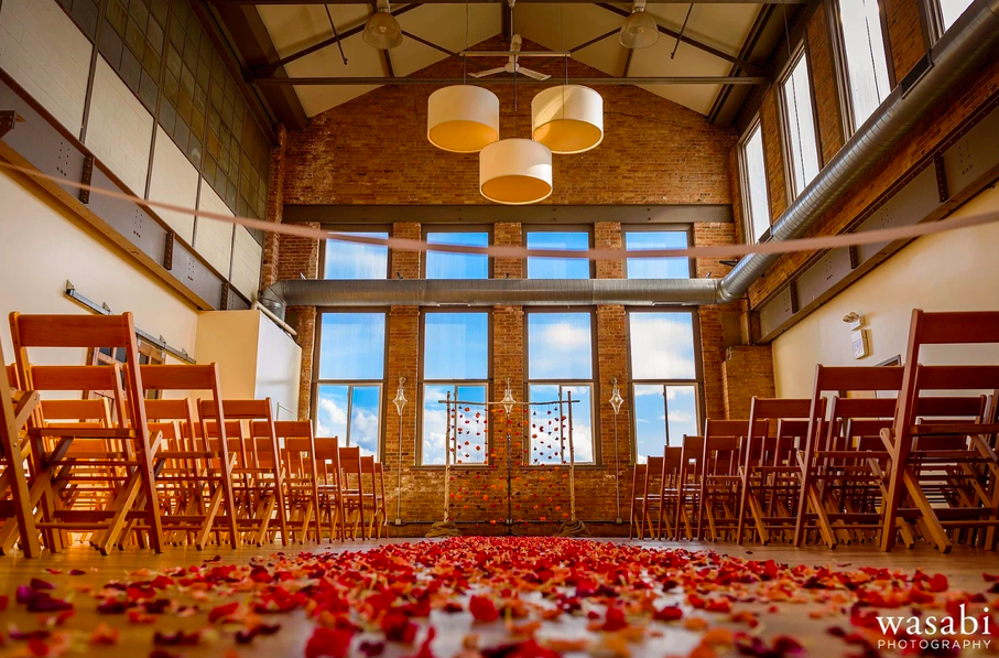 3,400 square feet of sunlit loft-style event space complete with a 400 square foot lofted overlook area, bridal suite, elevator access. In-house caterer with kitchen on site. Warm wooden accents, dimmable chandeliers, and cathedral-height ceilings, our space is perfect for intimate and medium sized gatherings. This beautifully designed, simple, urban setting can be transformed with simple or extravagant touches alike to thrill your guests and help to make your event memorable.