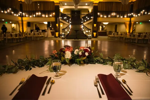 The Collingswood Grand Ballroom was perfect for our big wedding! It fit our 175 guests without feeling crowded, and the oversized dance floor was great. The lights around the upstairs area added to the look, and the first dance with everyone watching from upstairs was beautiful. The one thing that wasn’t a huge issue for us but is something to keep in mind is that there are multiple spaces in the ballroom and mansion that hold lots of events- so there may be other things happening in the complex even though they only do one wedding at a time.